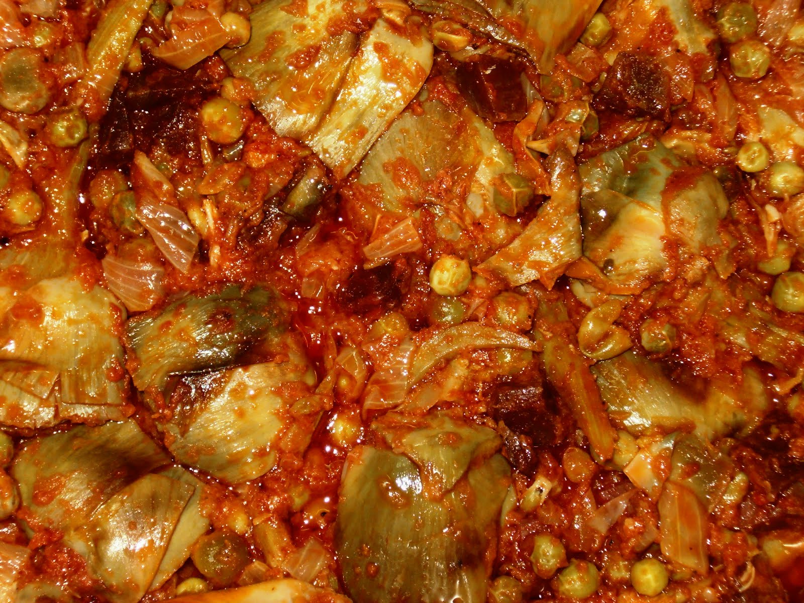 El tomate le da un punto diferente a este guiso típico de Cádiz, que se suele realizar en temporada, cuando entran los primeros alcauciles