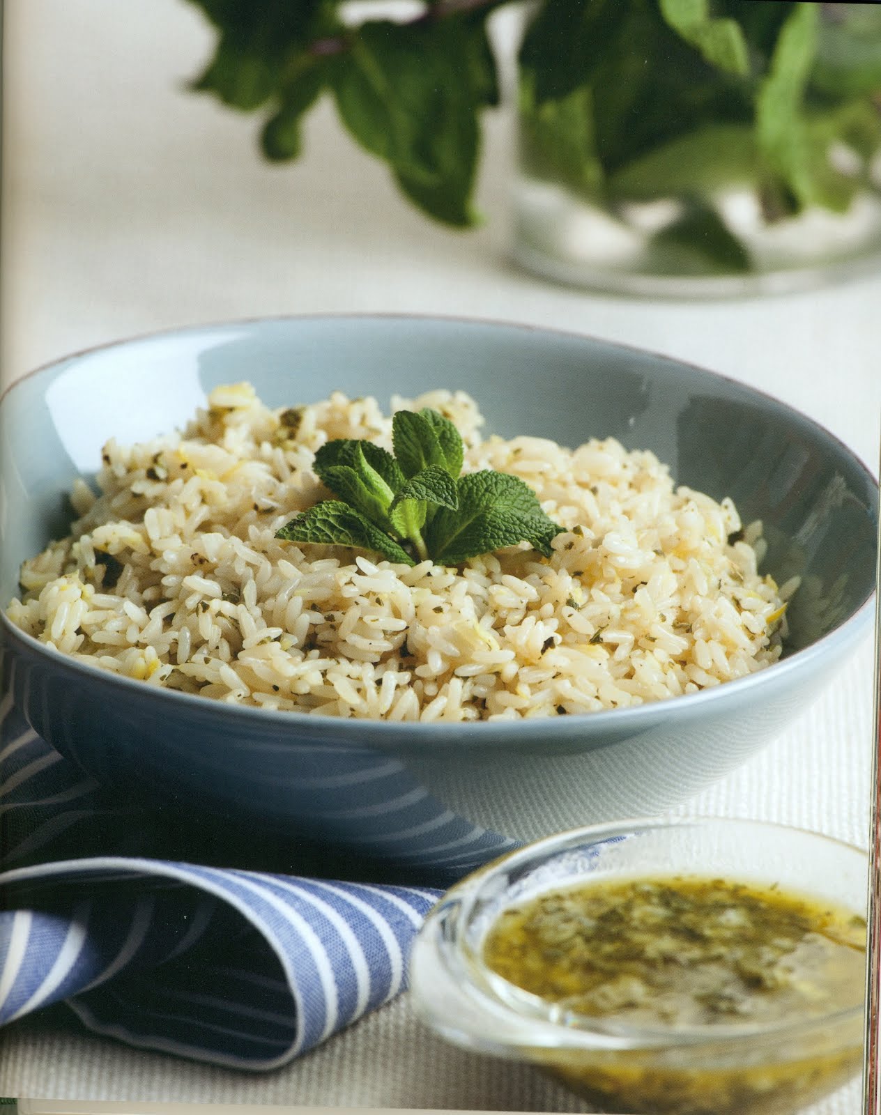 - Vuelque el arroz en un bol grande, deje enfriar y mezcle después con la vinagreta a la menta reservada.