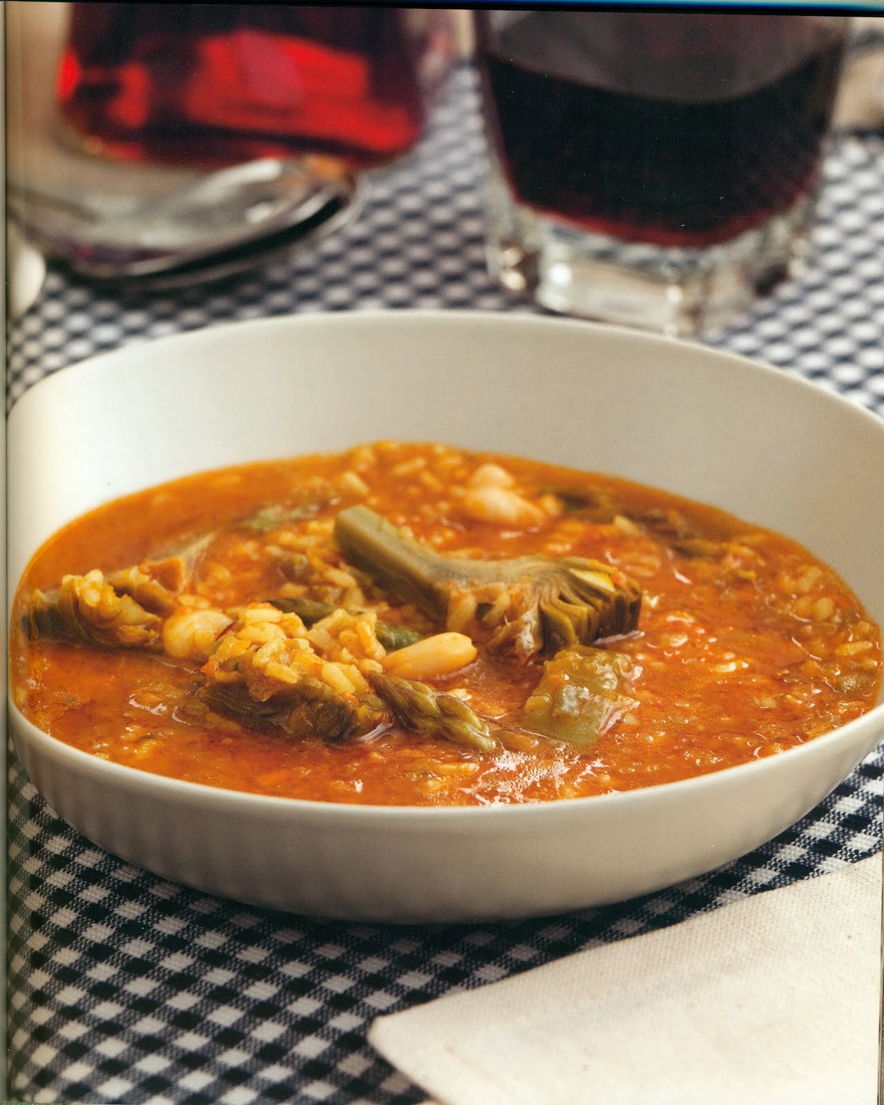 • 1 alcachofas partida en 8 trozos Azafrán o colorante (opcional)