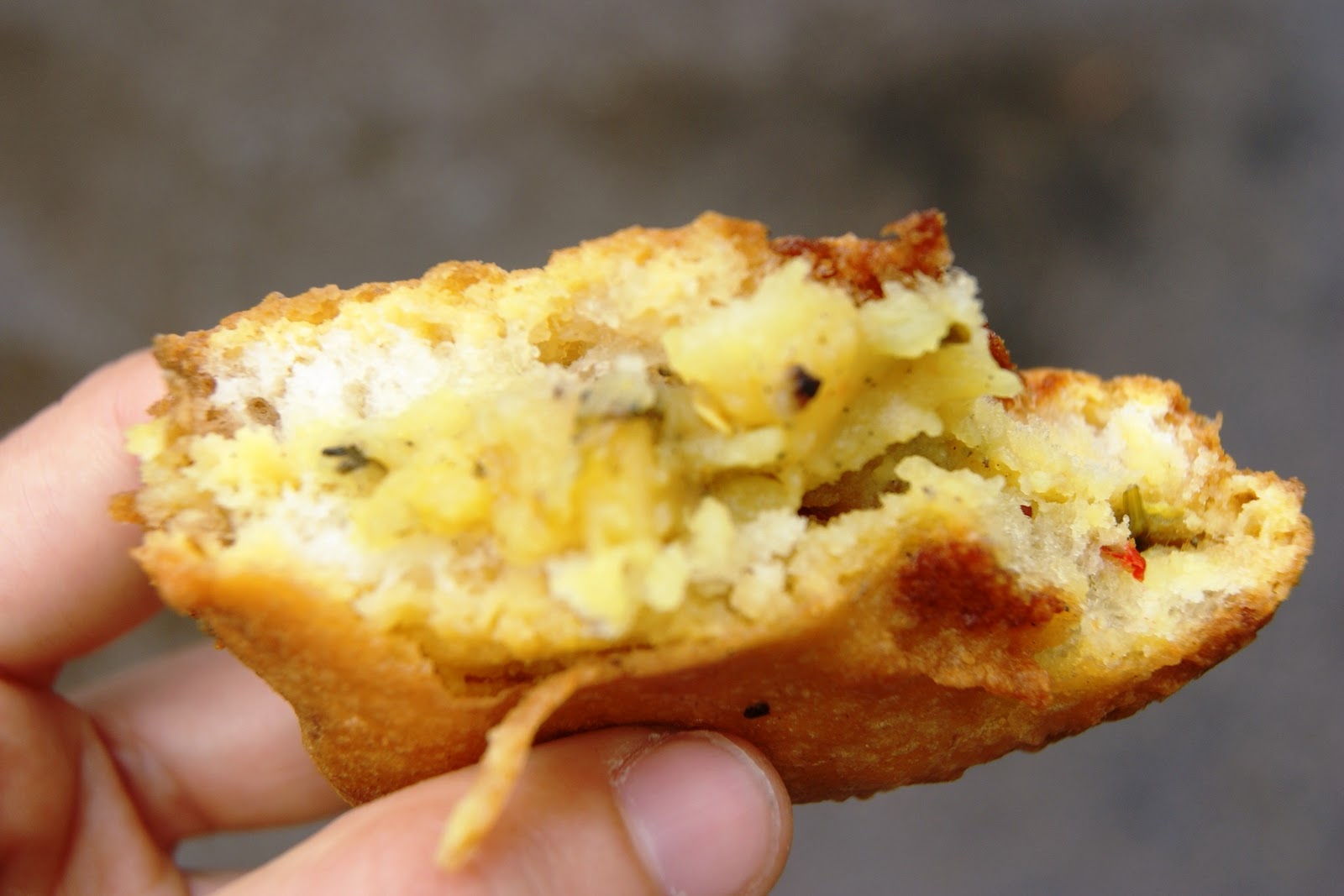 Pasamos el sanwhich por el huevo batido y lo freímos en una sartén con abundante aceite de oliva, doramos por los dos lados.