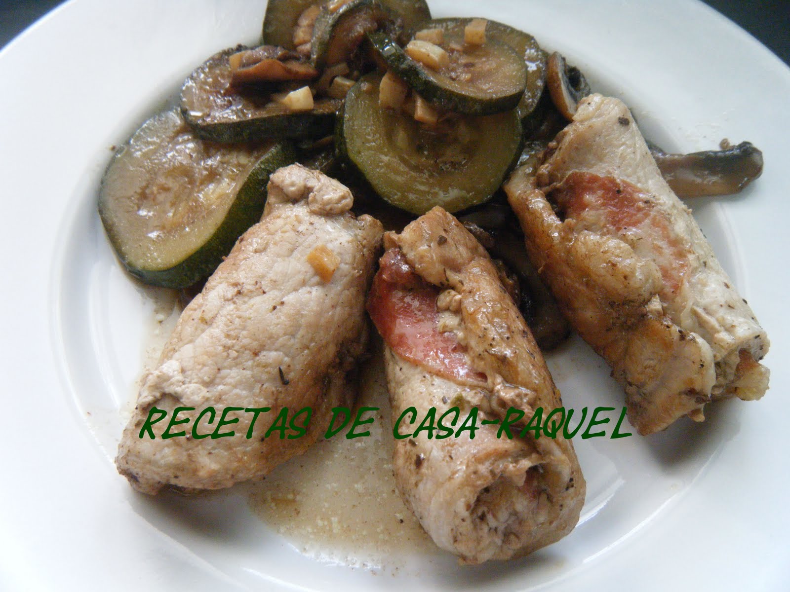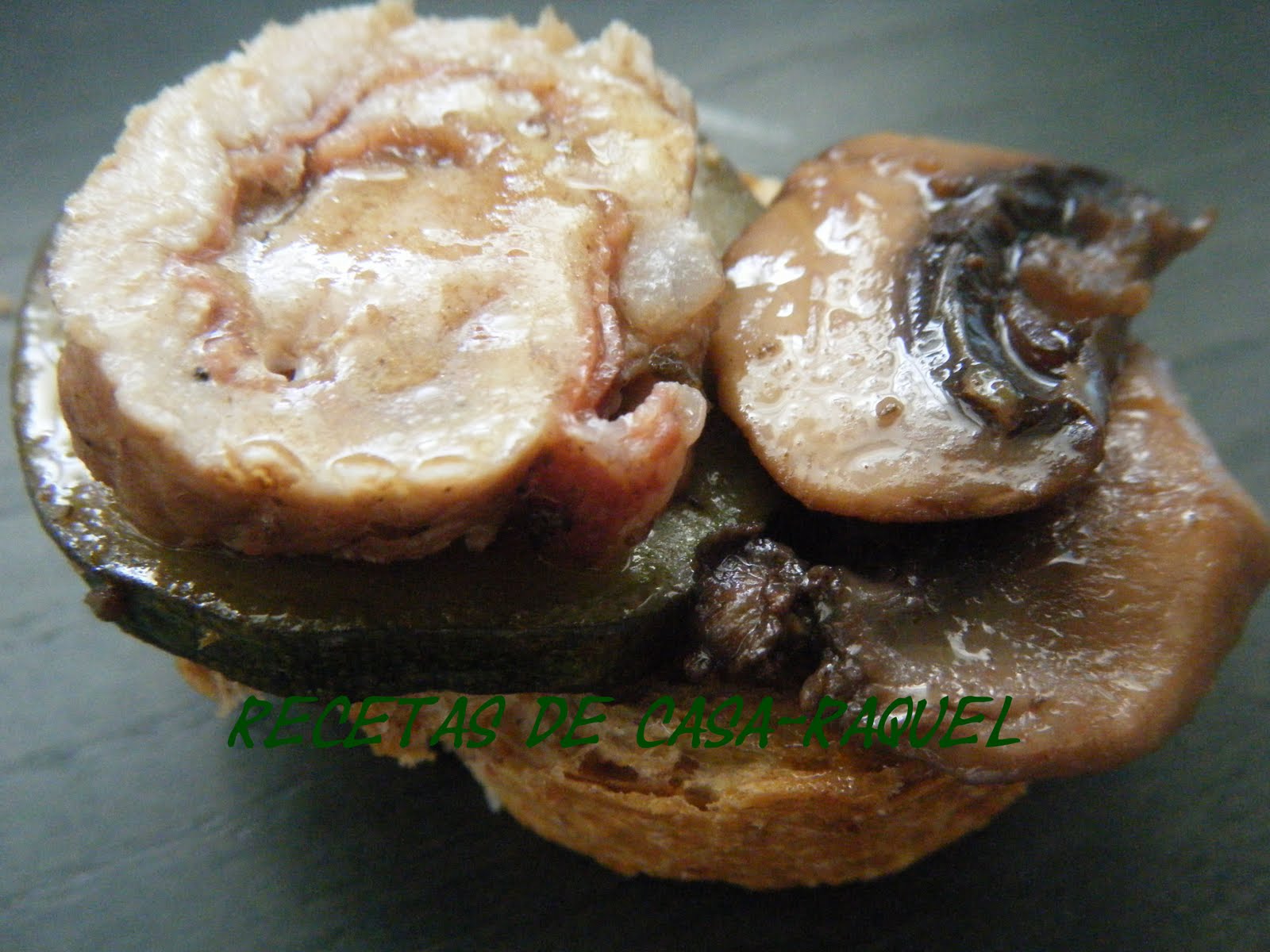 Encima del calabacin pones la carne partida en rodajas.