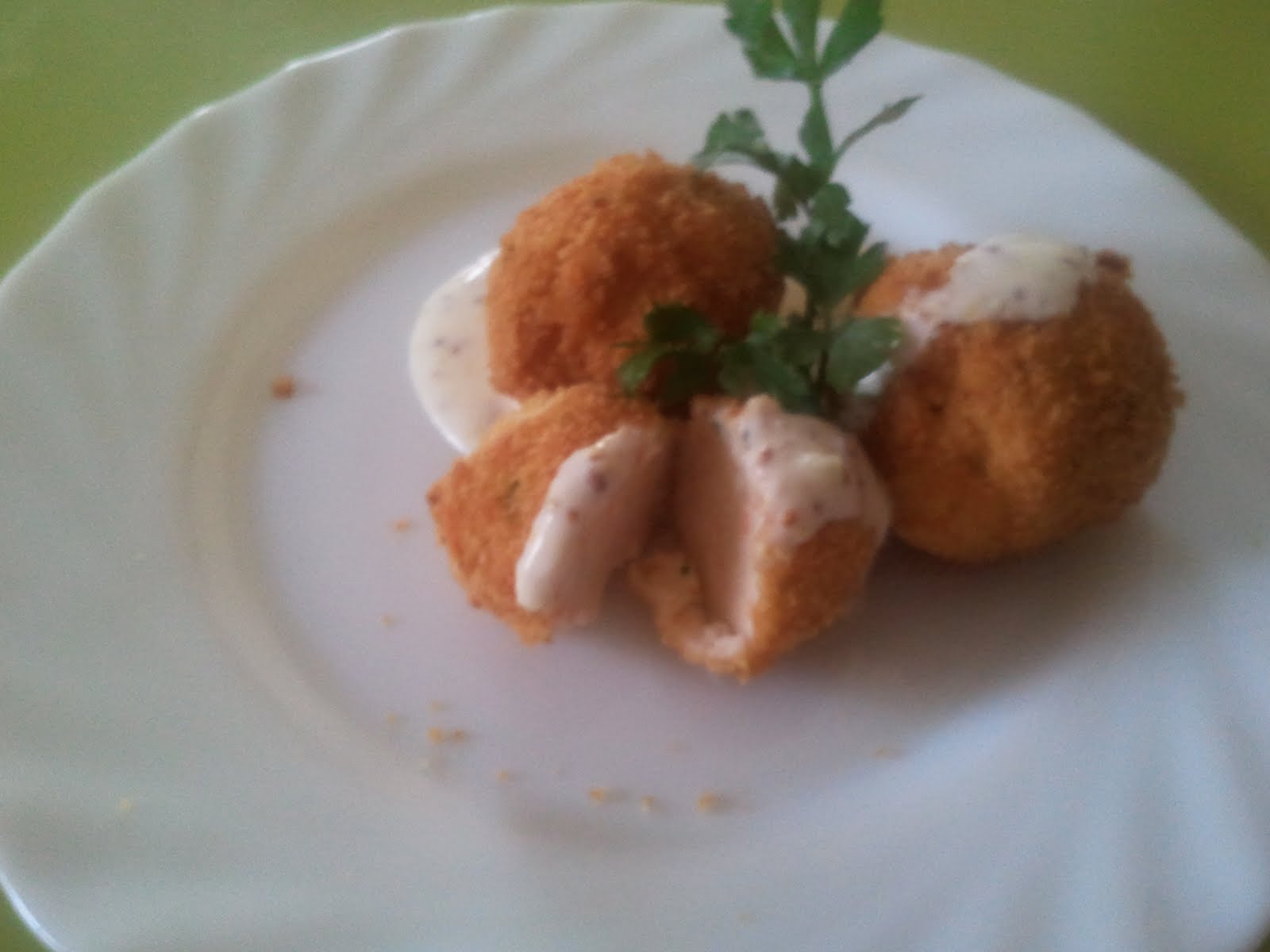 3.-Realiza bolas de pescado con las manos y pasa por pan rallado, fríe en abundante aceite de oliva caliente. Retira, escurre en papel de cocina y acompaña con la salsa de yogur.