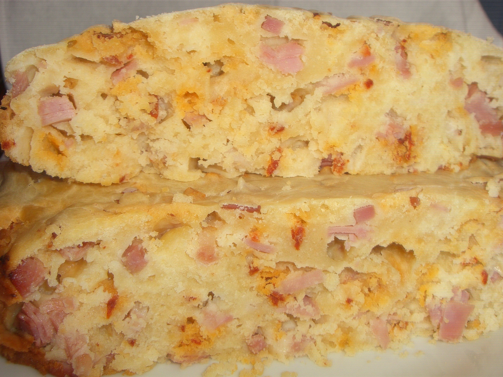 – Añadir el jamón , el chorizo y el bacón , mezclar con la espátula y verter la masa en un molde de 22 – 24 cm. previamente untado con mantequilla y espolvoreado de harina.