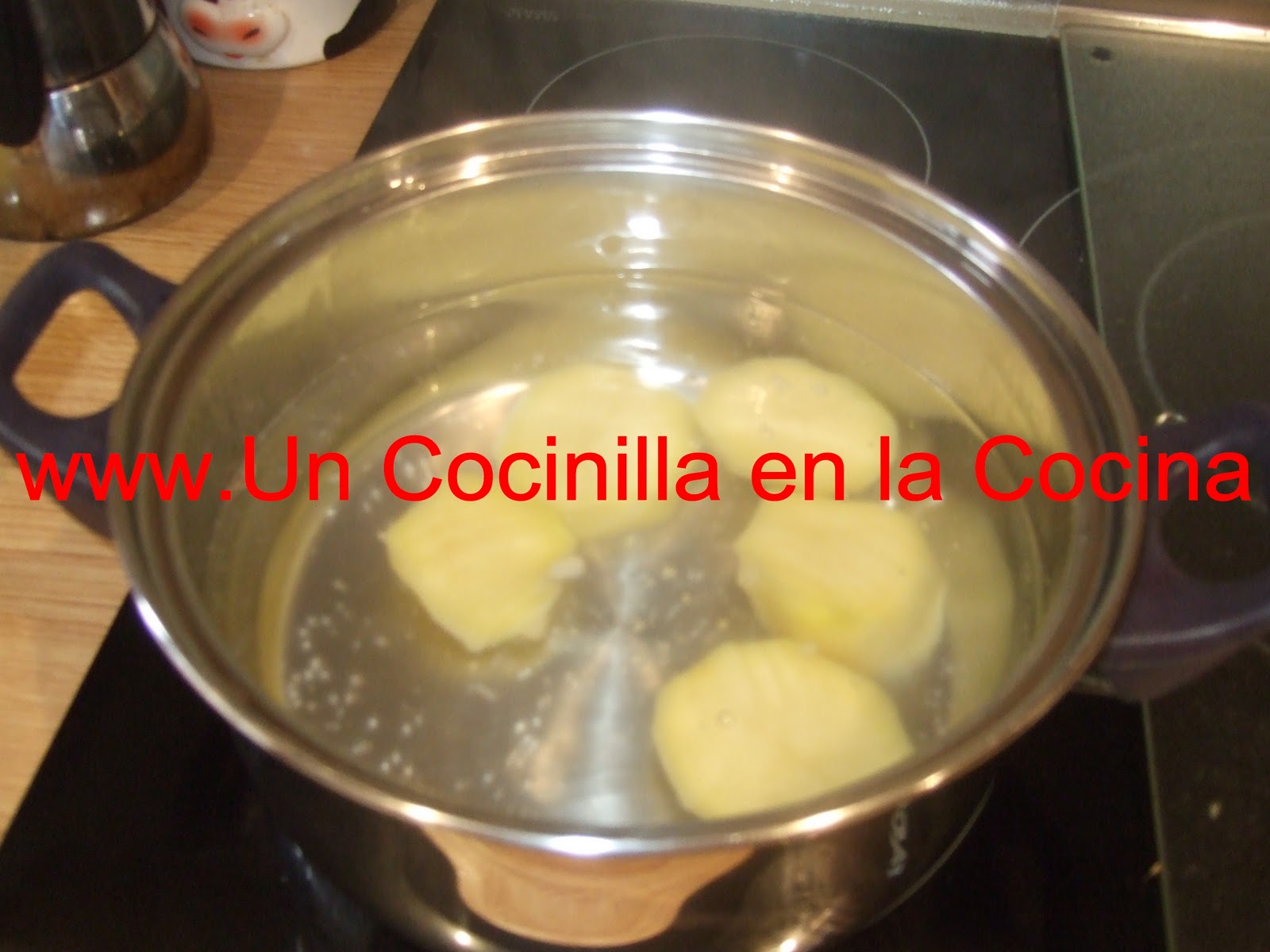 Se añaden las patatas partidas en trozos cuando el agua este hirviendo.