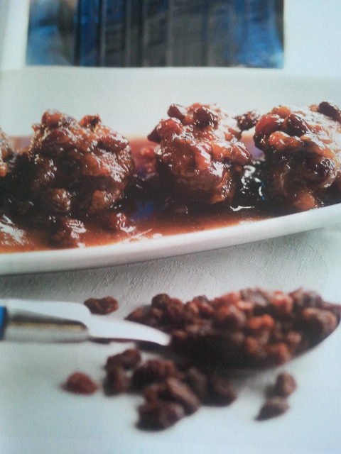 4.-Agregamos el vino tinto y el vino Pedro Ximénez y programamos 60 minutos, temperatura 100º, giro a la izquierda y velocidad cuchara. Cuando queden 10 minutos para el final, añadimos las uvas pasas reservadas por el bocal.