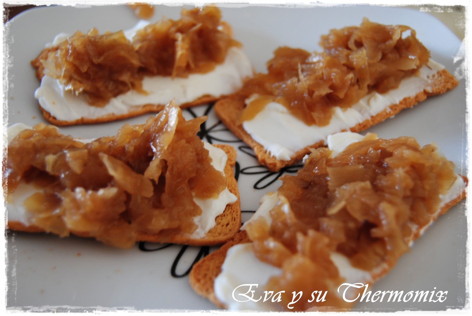 Una de las cosas que más gustó de la cena de Nochebuena fueron los montaditos de queso de untar y de queso de cabra con cebolla caramelizada. Es una receta muy sencilla, que se hace en un plis plas y que nos sirve tanto para canapés como para acompañamiento de carnes.