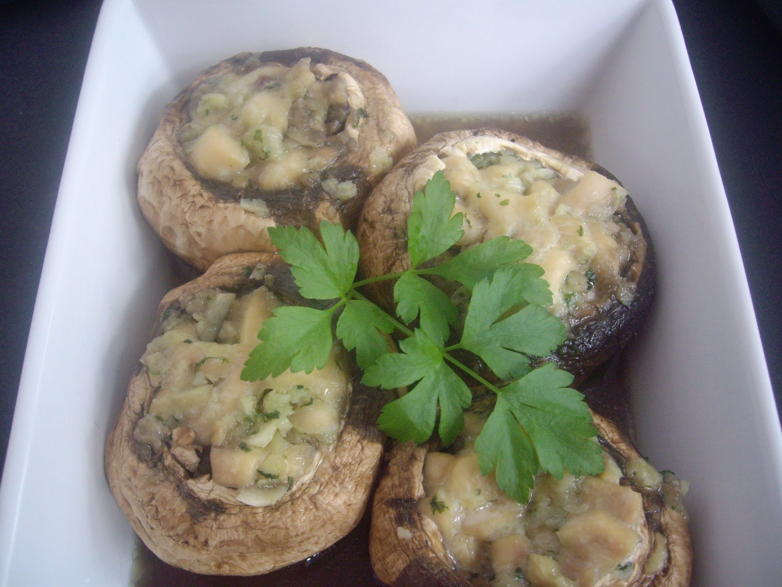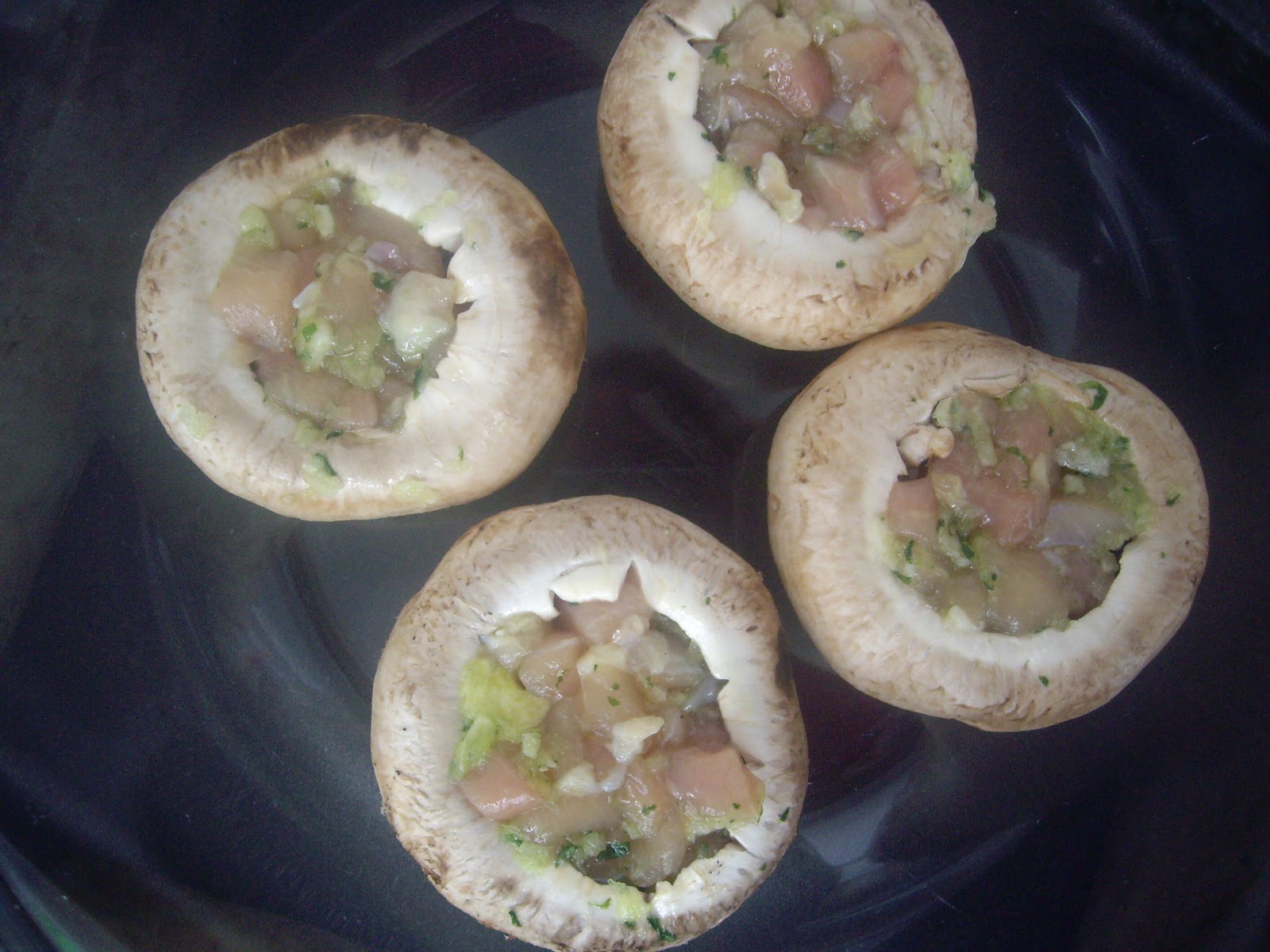Rellenamos los sombreritos con el picadillo de ajo, perejil y pollo.