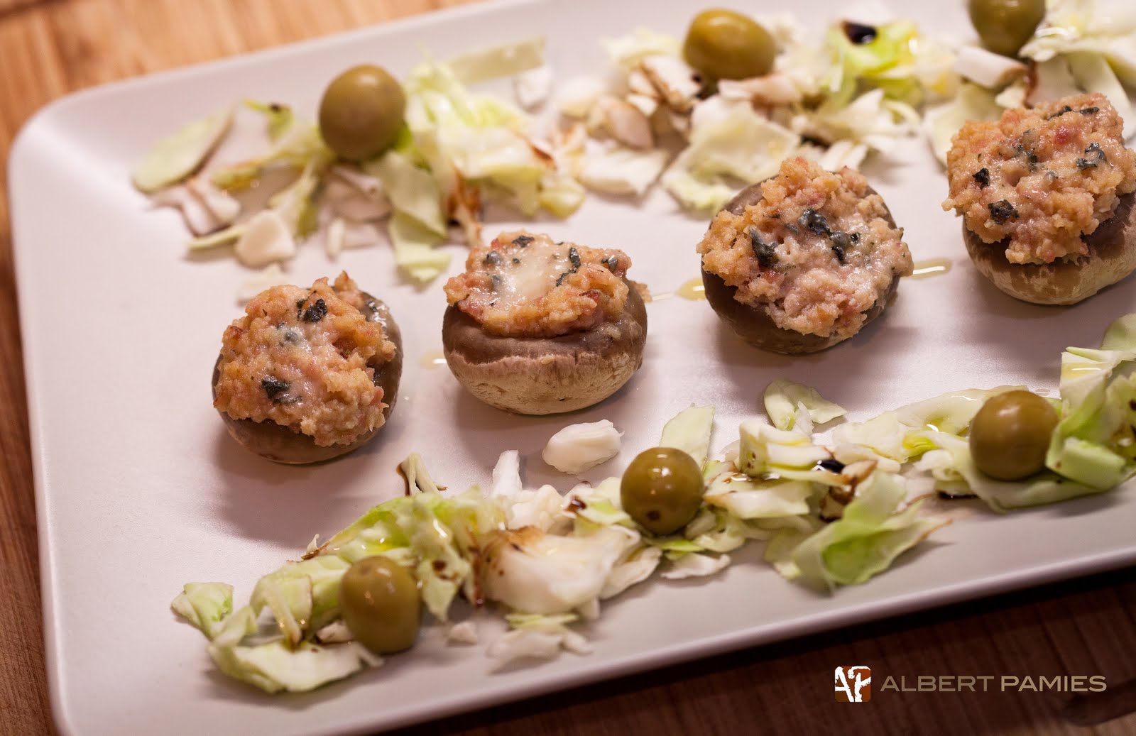 - Escurre el exceso de grasa con el cestillo y rellenar los champiñones con este picadillo