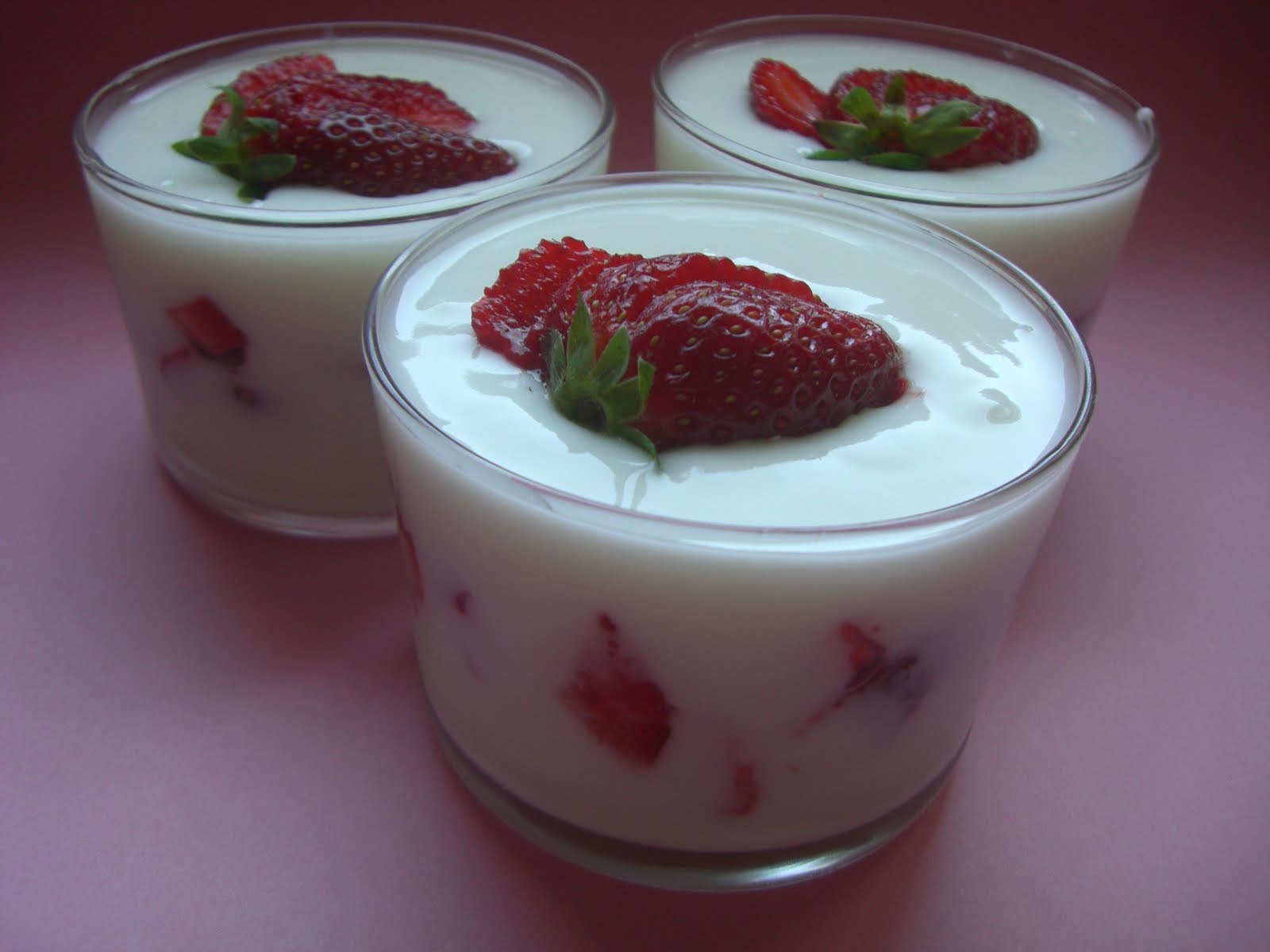 – Echar las fresas troceadas en los vasitos , terminar de cubrir con la mezcla y llevar al frigorífico hasta el momento de servir.