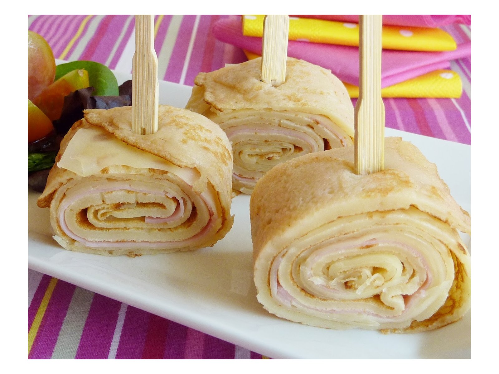 3.-Cuando la crepe esté dorada por ambos lados, sin retirar de la sartén, coloque sobre ella una loncha de jamón york y otra de queso. Enrollar la crepe con la ayuda de un tenedor y dejarla unos instantes más en la sartén para conseguir que se funda el queso.