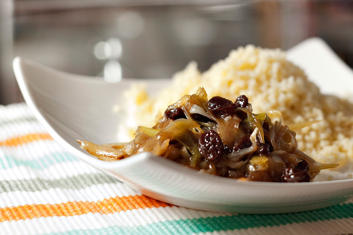 Nota: para ir mas rápido, puedes hacer el cuscús en un cacito mientras se preparaban las cebollas. Lo preparas como indica el paquete, con el resto de la mantequilla, el agua y la sal.