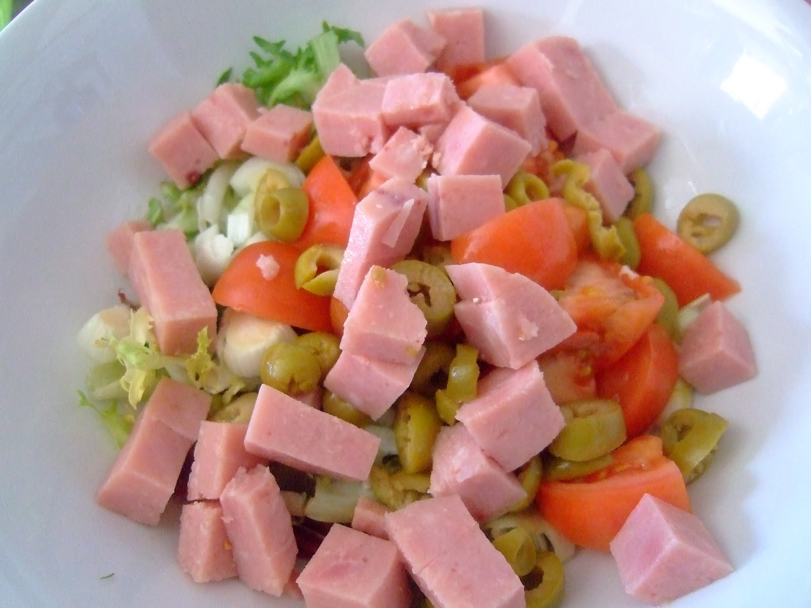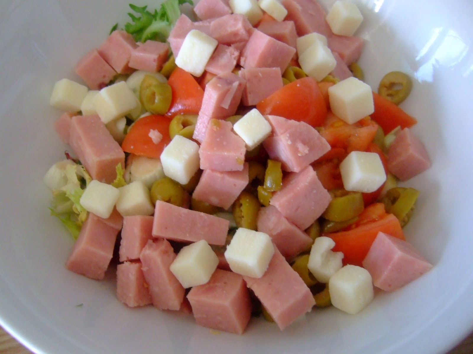 El jamón cocido y las aceitunas.