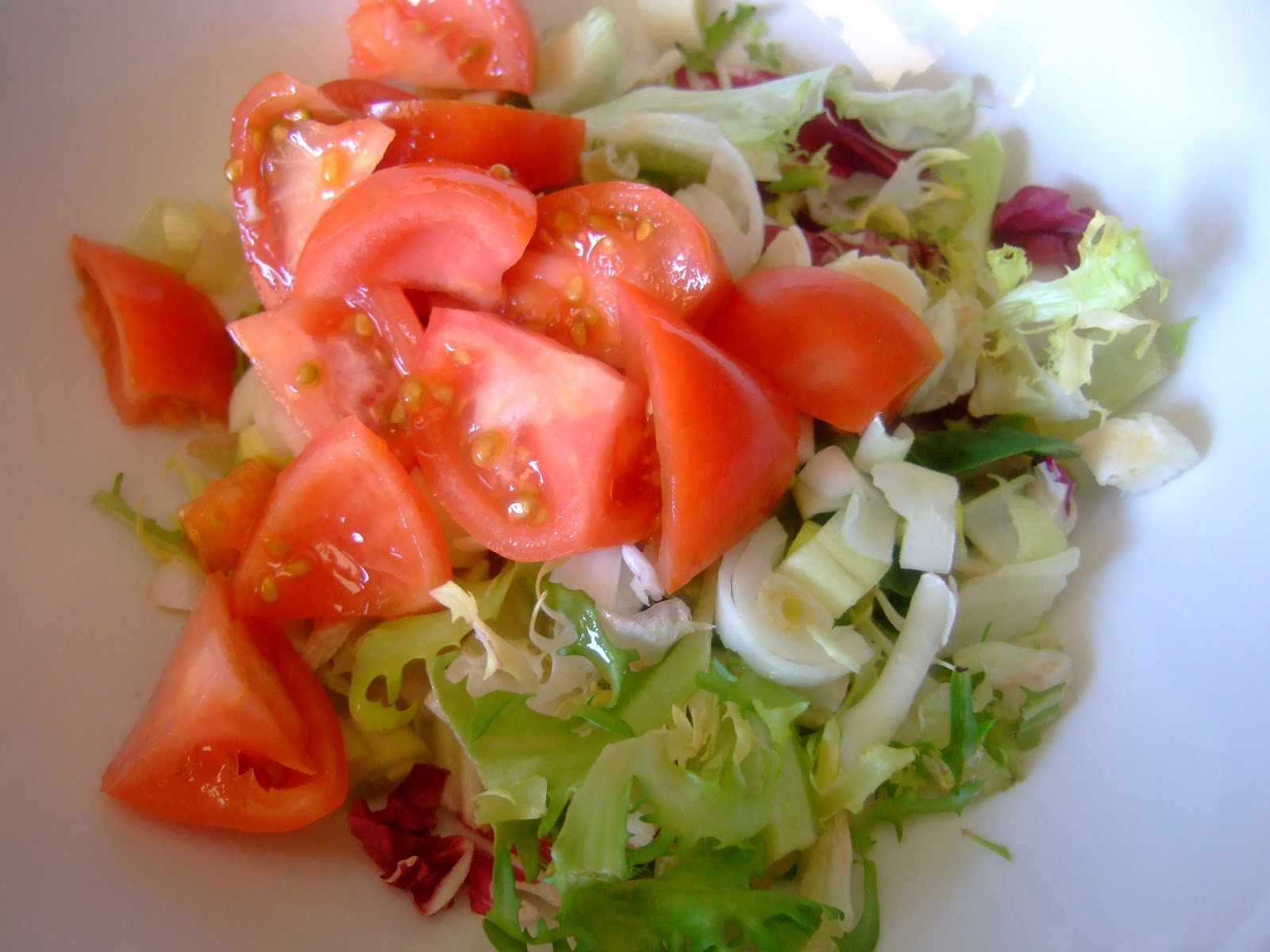 Se le añade la ensalada, la cebolleta y el tomate.