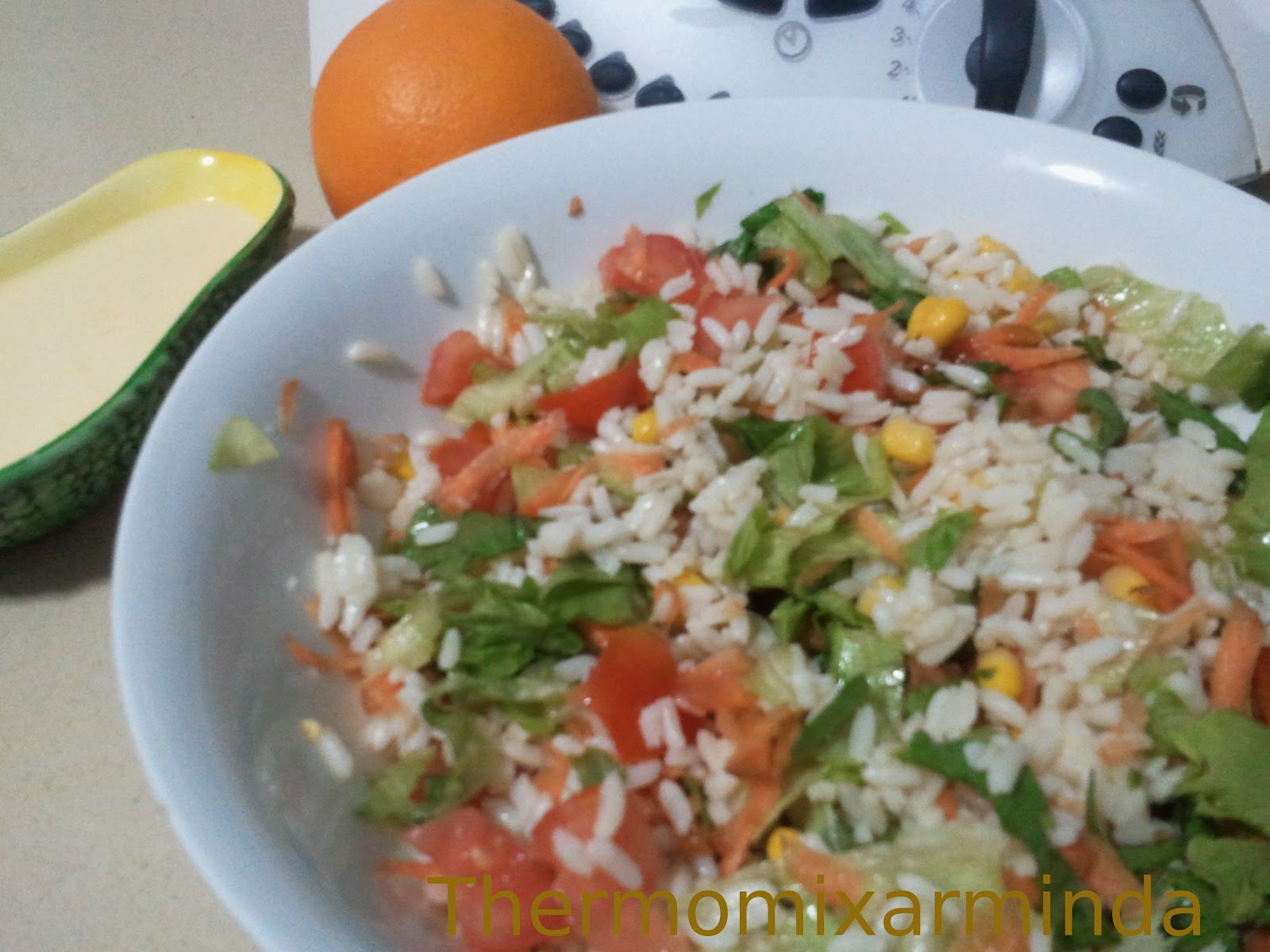 Nota:Esta receta se puede preparar con antelación y guardar en la nevera. Pero mejor por separado,no mezcléis la ensalada con el aliño hasta la hora de servir.
