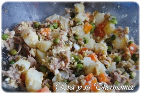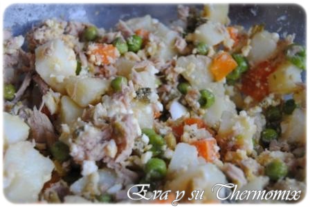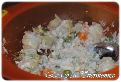 – Añadir esta mezcla a las verduras reservadas. Agregar el atún y la mahonesa.