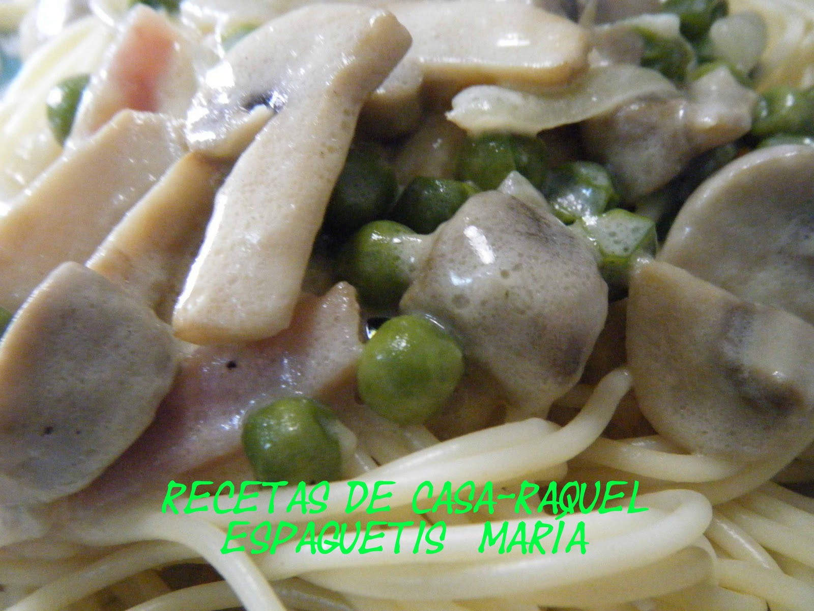 Estos espaguetis tan deliciosos, que fueron devorados por mis peques, les he puesto el nombre de mi sobrina María de tres añitos que es una delicia, morenaza y guapísima.