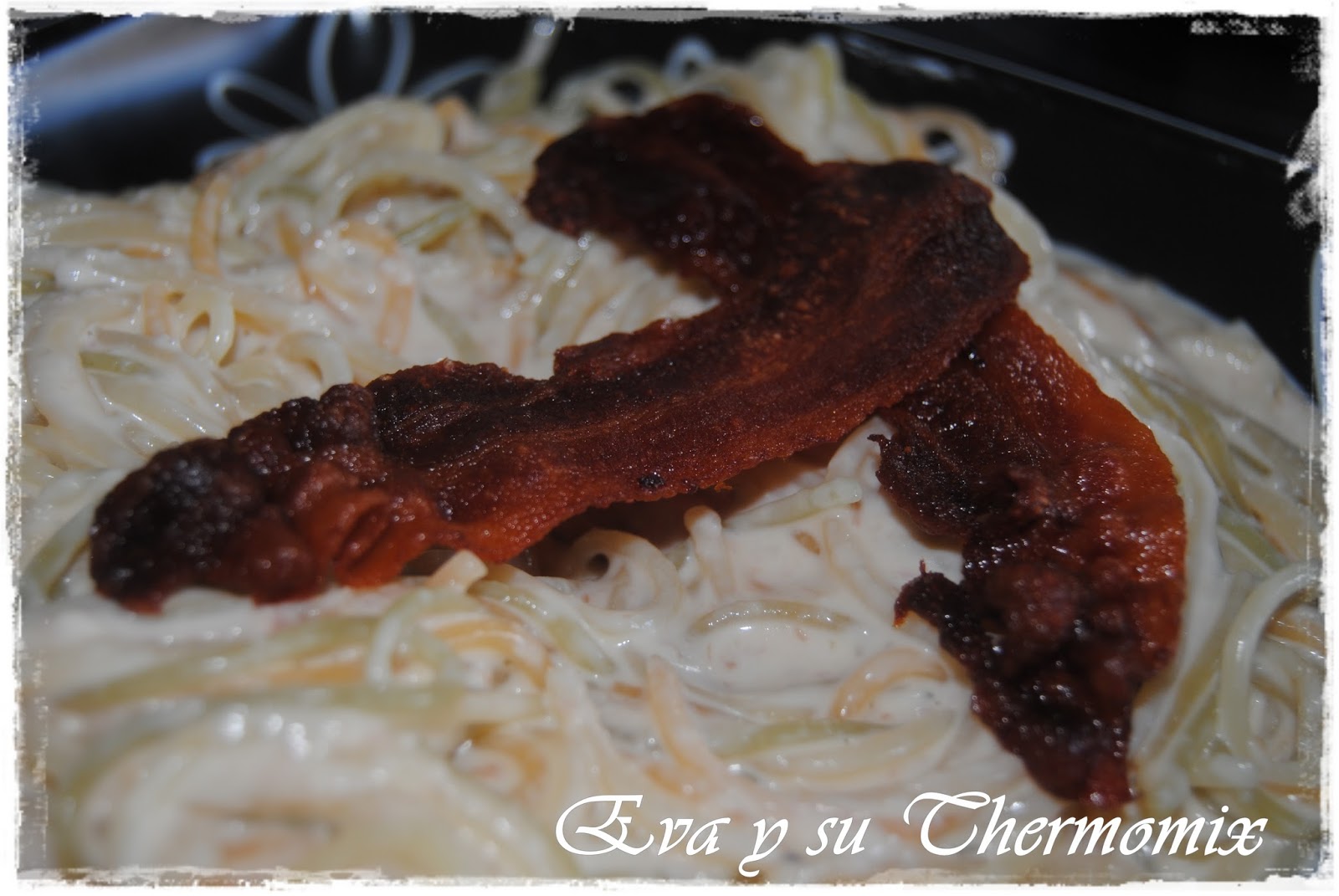 Llevaba bastante tiempo con la idea de preparar pasta en salsa carbonara y ayer por la mañana encontré esta receta en el blog Las cosas de Ana y como vi que tenía todos los ingredientes necesarios me puse manos a la obra con ella.