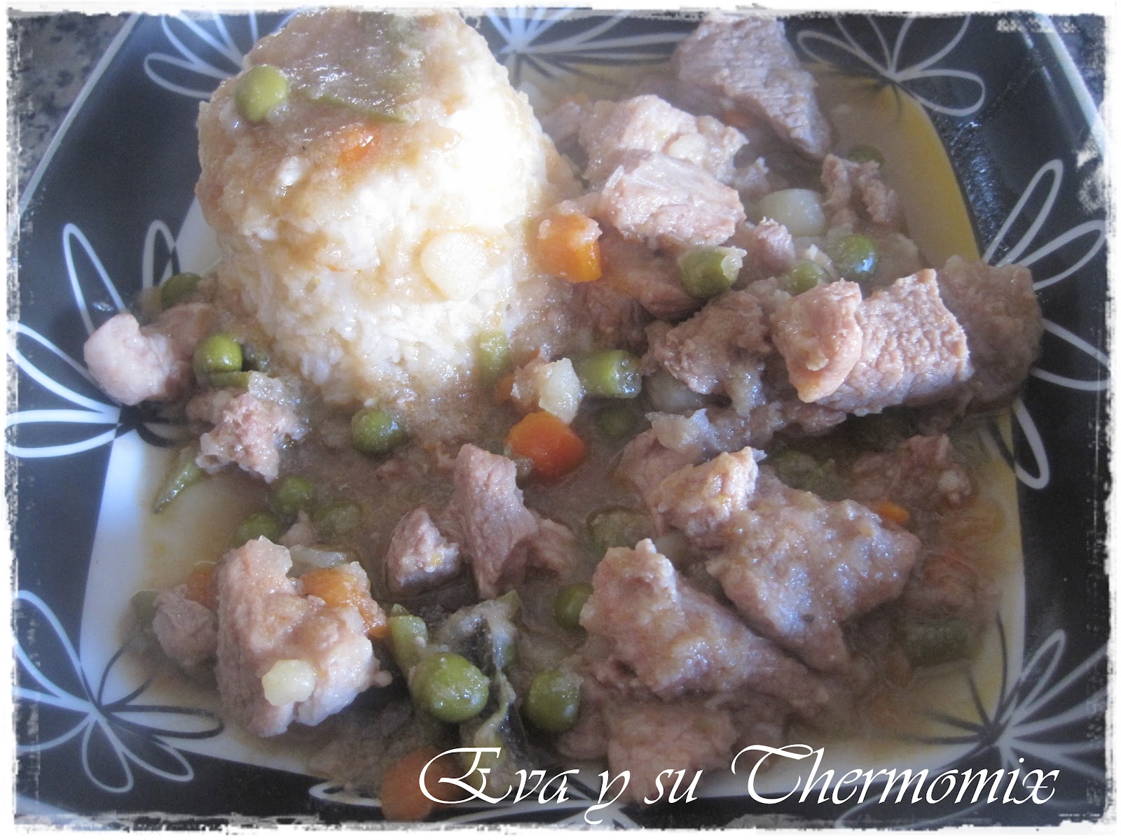 – Cuando finalice el tiempo añadimos las verduras escurridas y programamos 10 minutos a 100º, giro izquierda y velocidad cuchara. Si la carne no estuviera tierna ponemos unos minutos más. SI vemos que la salsa ha quedado demasiado líquida podemos dejar estos 10 minutos sin el cubilete puesto para que evapore el agua.