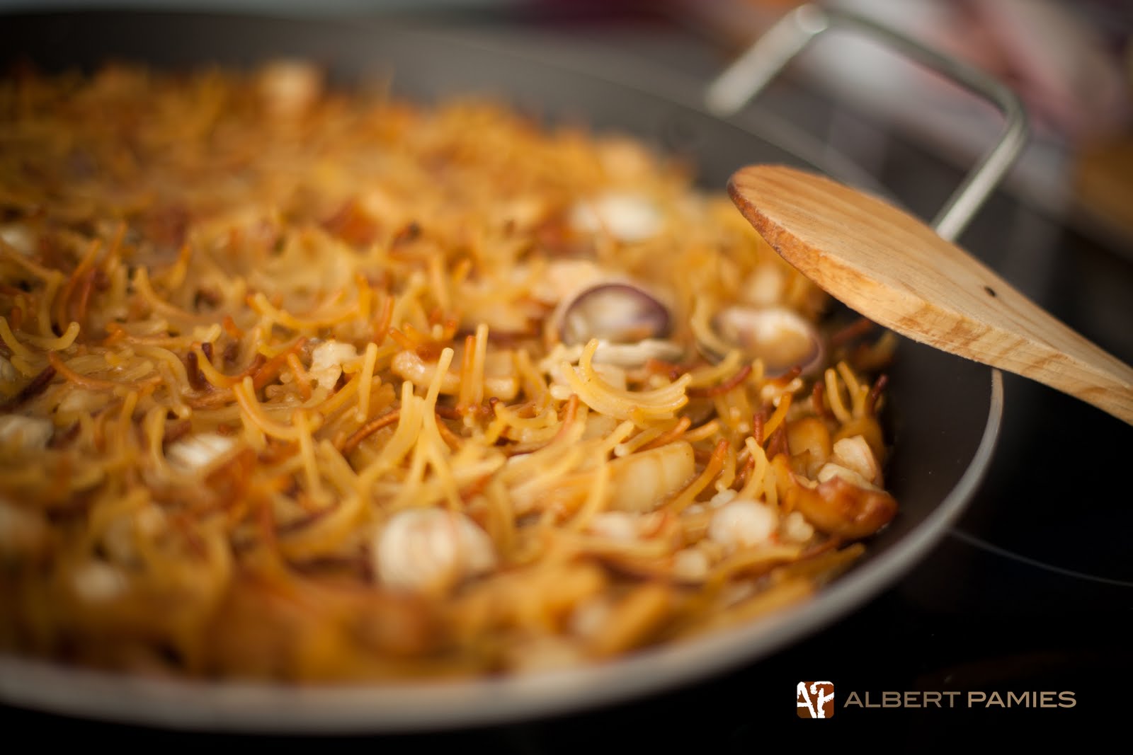 Siempre he hecho la fideuá de la manera tradicional, es un plato que nos encanta, sobre todo acompañado de alioli… Hay muchas maneras de hacerla, quizá hasta con nombre distinto, pero la que a mi me gusta es la que se tuestan los fideos y quedan bien sequitos.