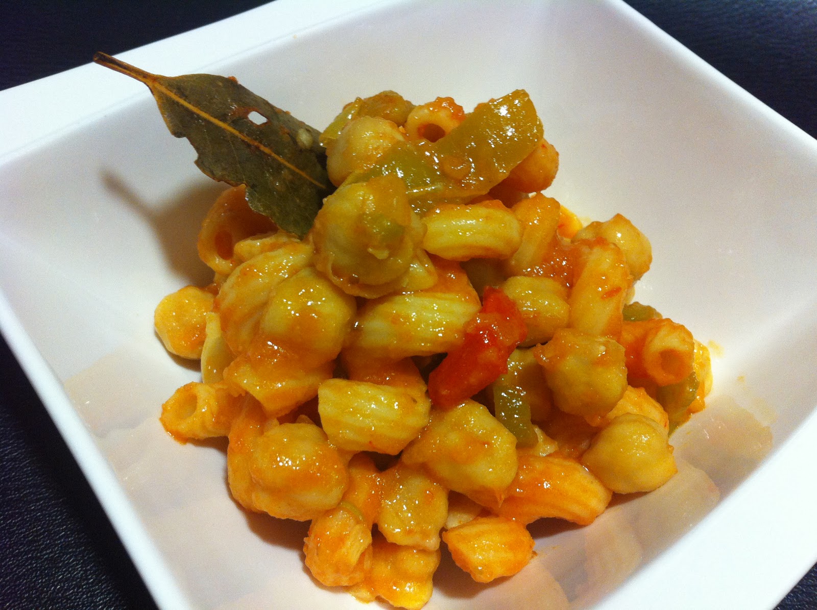 Añadimos la hoja de laurel, la sal, el pimiento rojo y el pimiento verde.