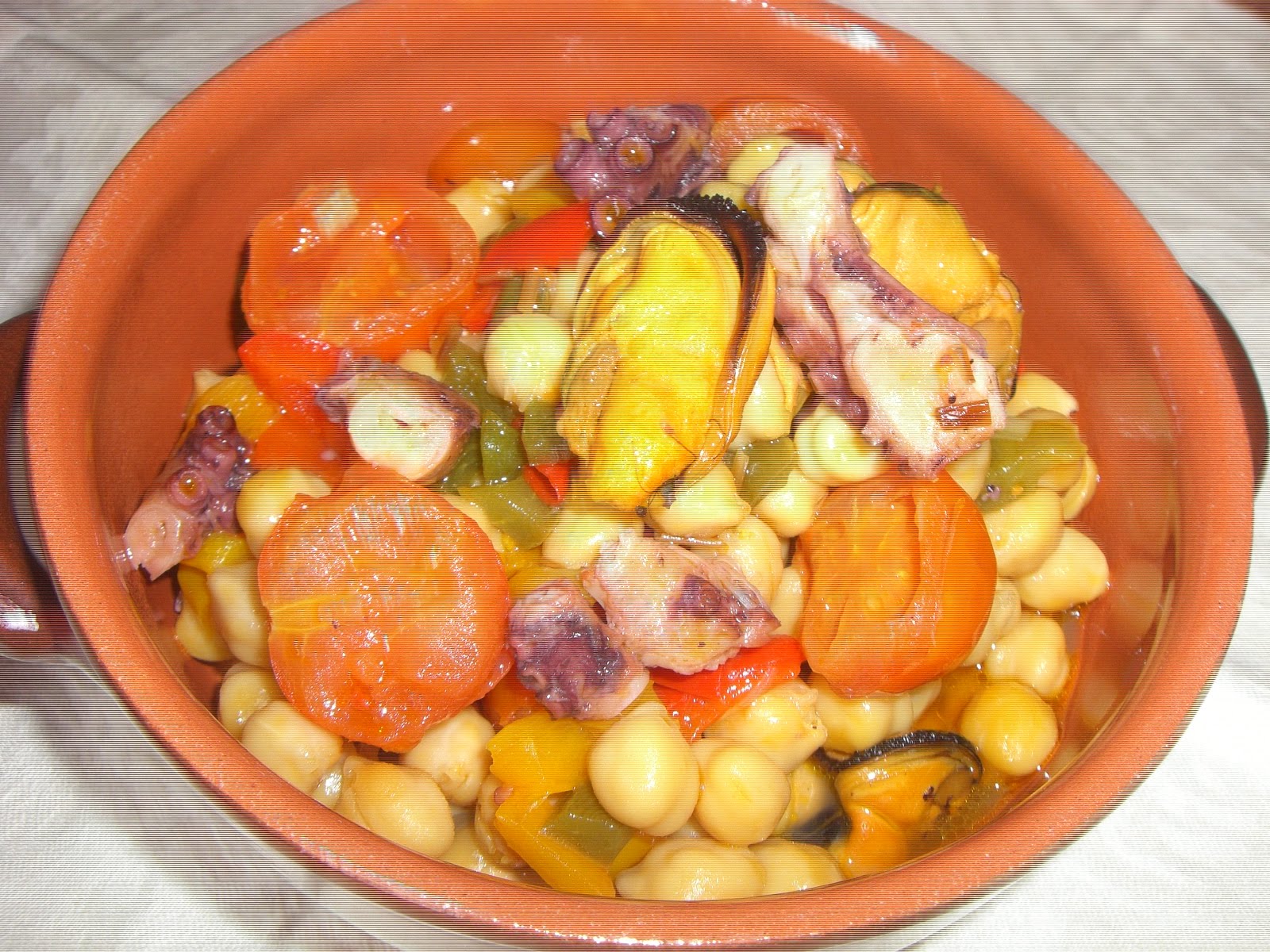 Un rico guiso de garbanzos con pulpo y mejillones. Para los días fríos y para la Cuaresma.