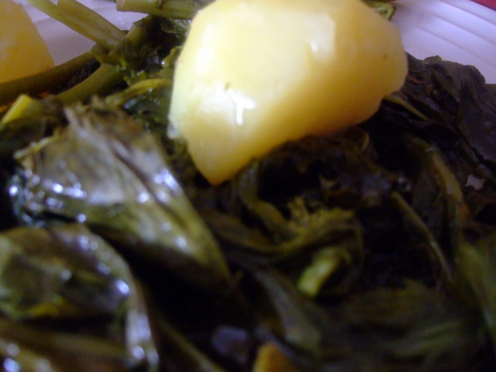 Cerrar el vaso y colocar el recipiente varoma, colocar los grelos y las patatas, ponerles la sal.