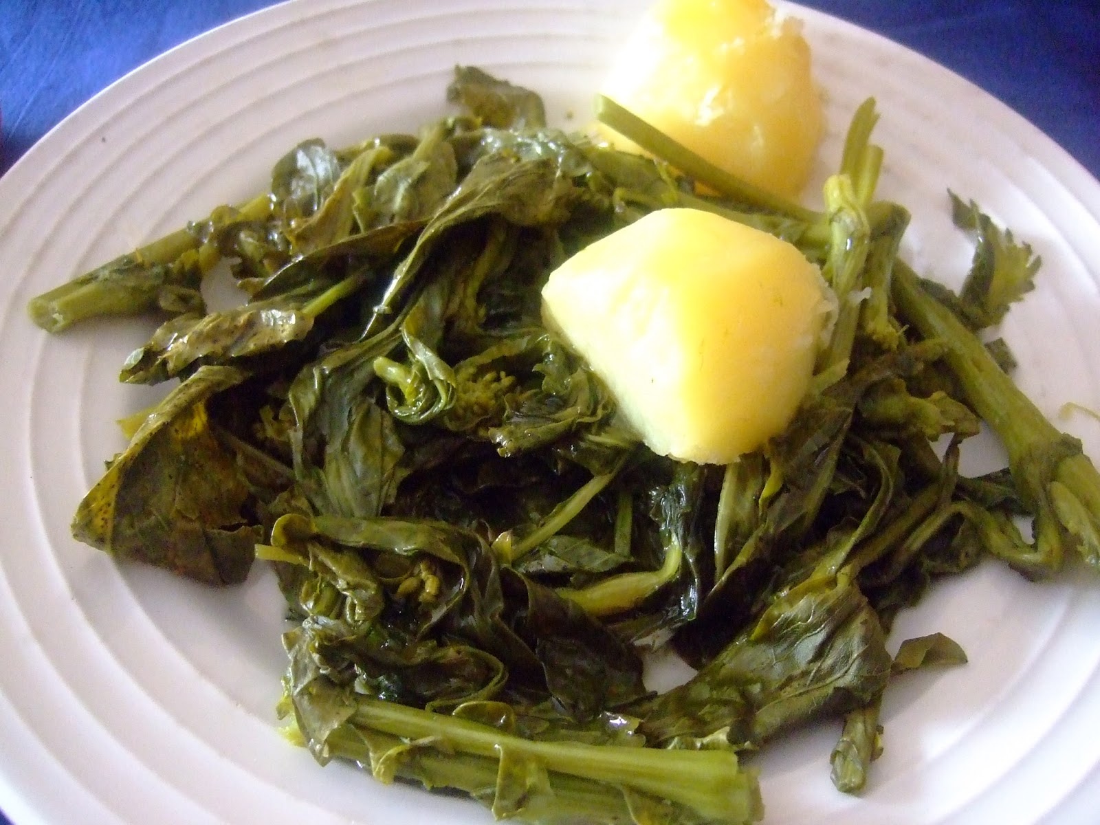 Poner los grelos, echar la sal, en una cacerola u olla express freírlos un poco junto con los ajos.