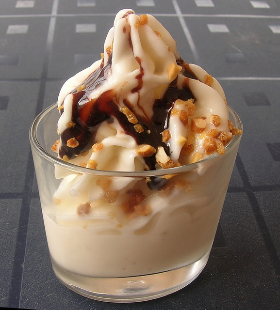 Nota: Es muy cremoso y se derrite rapidamente. Es mejor dejarlo congelar completamente y al día siguiente lo sacas un poco antes de comer y se tritura 30 segundos más o menos con velocidad progresiva 5-10, ayudándole con la espátula por el bocal para que quede bien de textura , añadimos el sirope que nos guste por encima y listo para sevir!