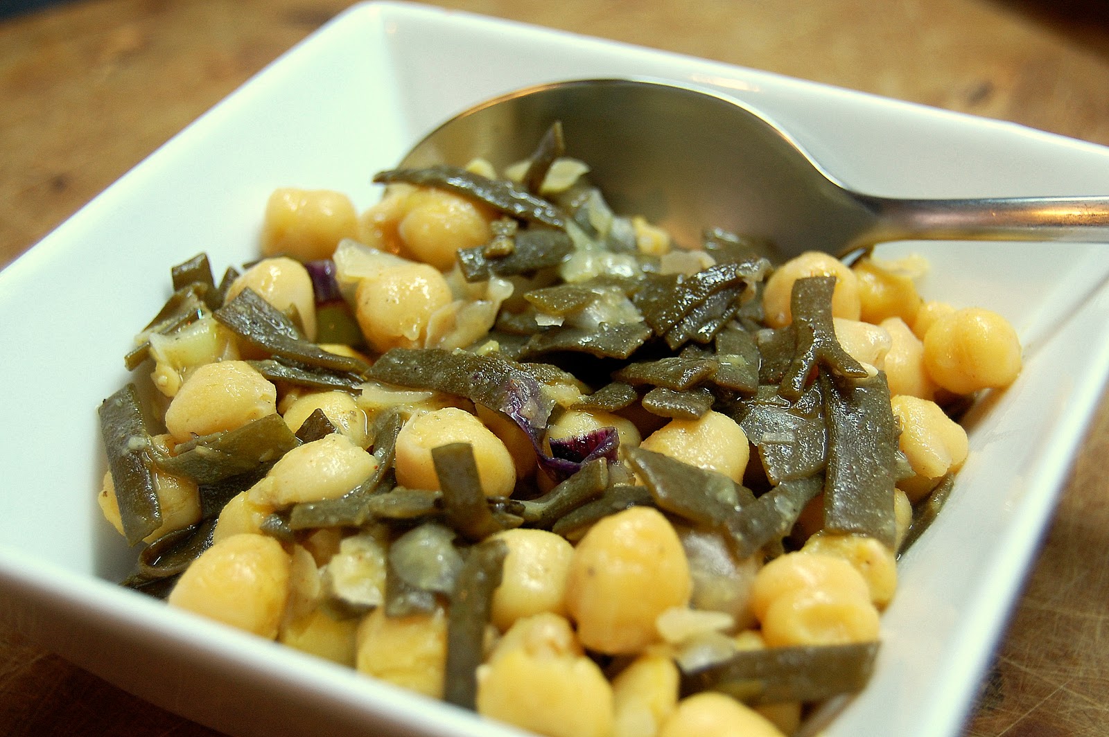 Que traducido resulta: garbanzos con espaguetis de mar (me hacía ilusión colar el chiste).