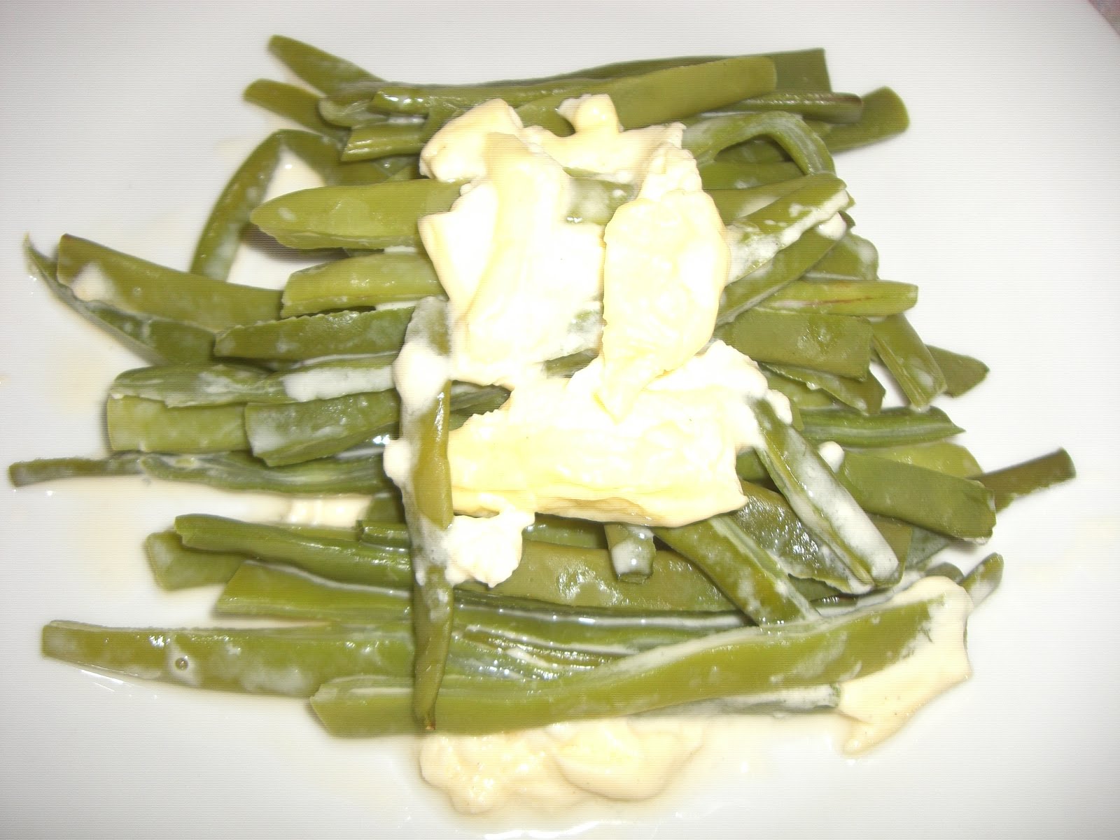 – Verter la mezcla sobre las judías y gratinar , hasta que veamos cuajada la mezcla.