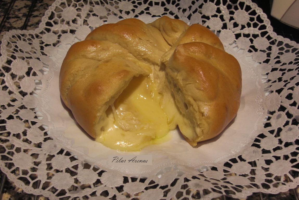 - Lleva los bordes de la masa hacia el centro y cierra el pan. Coloca sobre una bandeja de horno cubierta con papel de hornear. Hornea durante 20 a 25 minutos aprox.