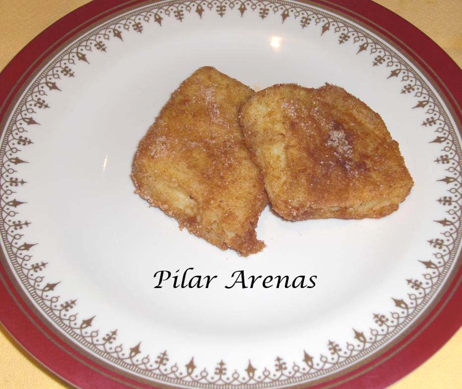 - Corta en cuadrados la masa, pasa estos por las galletas ralladas y por huevo batido, frielos en aceite caliente. Pasa cada cuadrado por canela mezclada con azúcar.