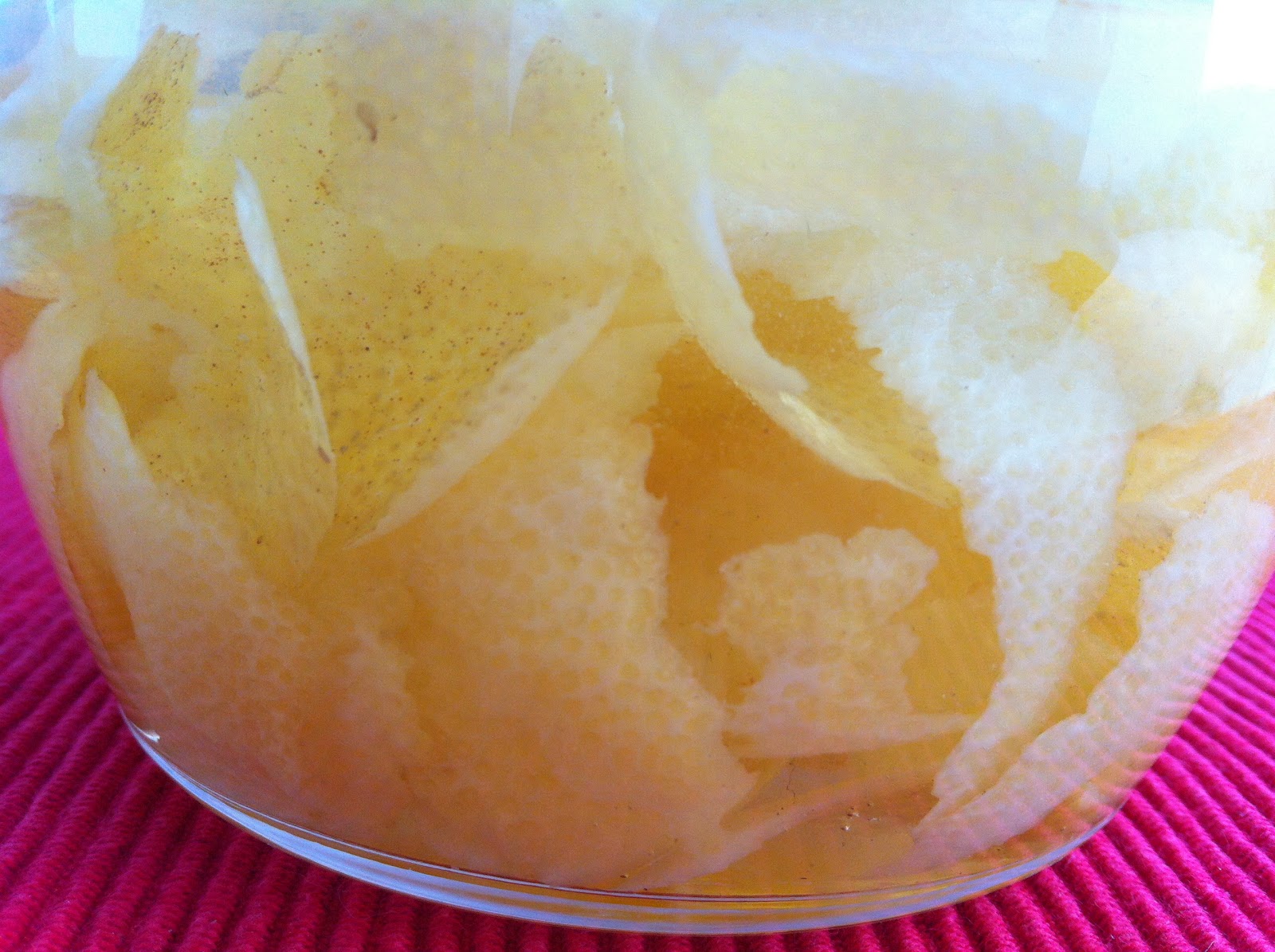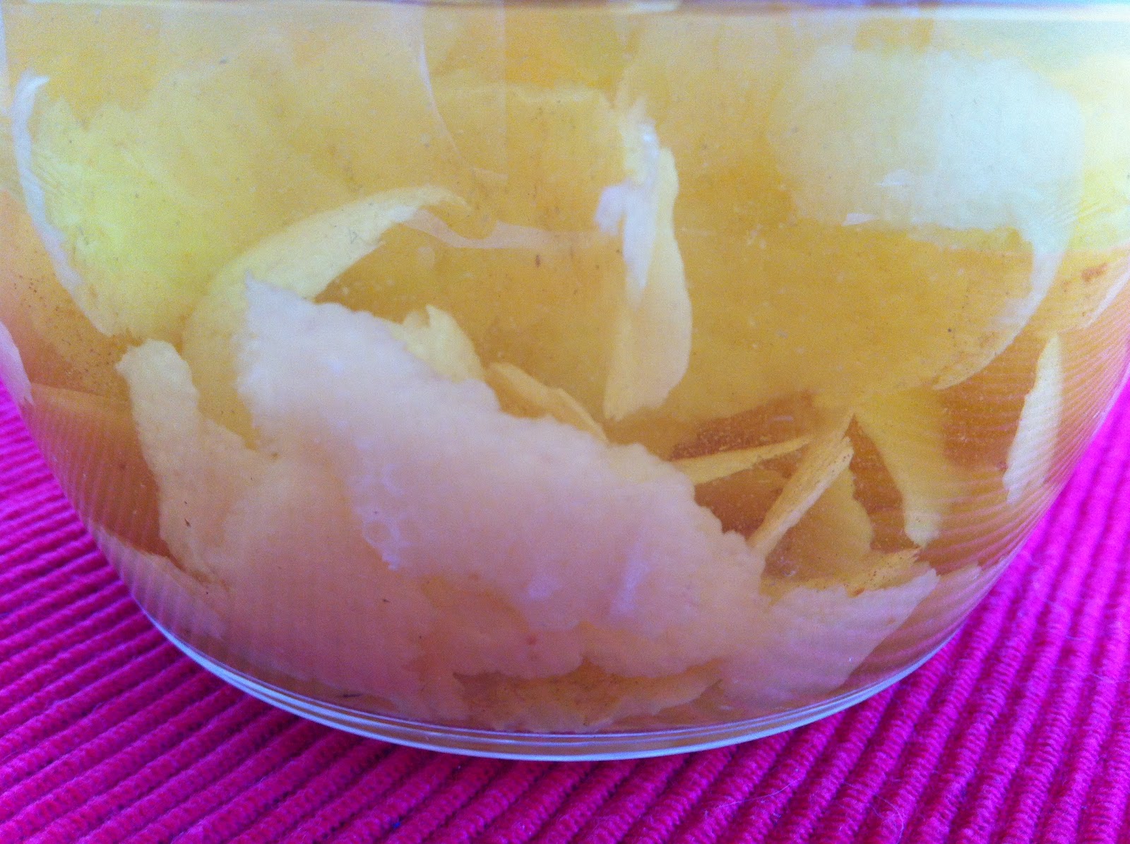 Ponemos las pieles en un tarro de cristal con una buena tapa hermética.