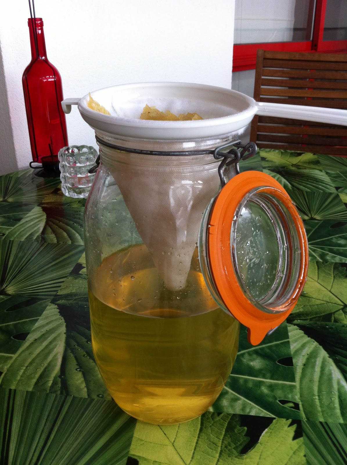 Ahora sólo queda filtrar el licor, os recomiendo utilizar un colador de tela o un paño de hilo fino bien limpio.