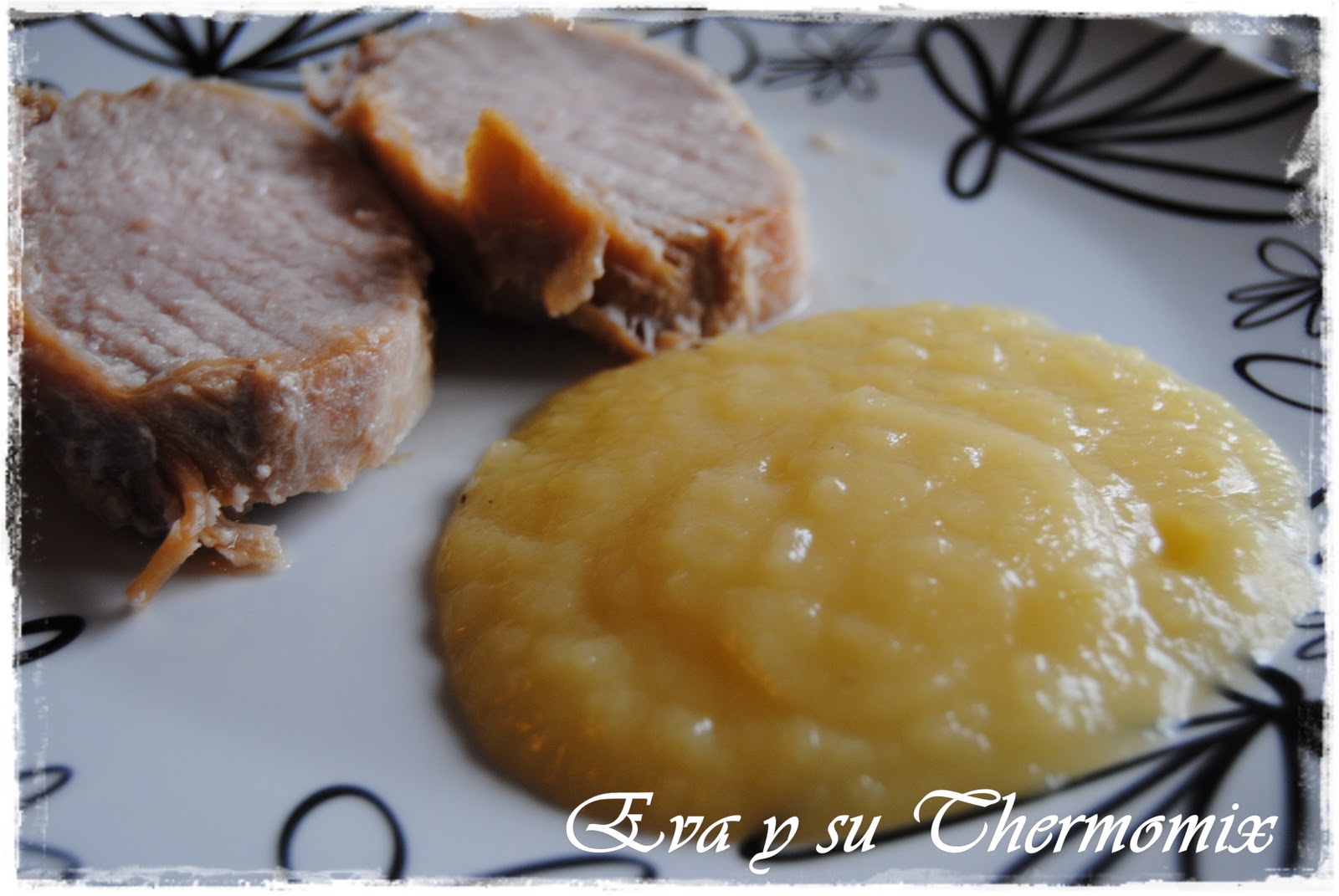 – Ponemos un poco de sal cubriendo el fondo del recipiente Varoma y colocamos encima el lomo, lo cubrimos con el resto de sal. Lo cerramos y reservamos.