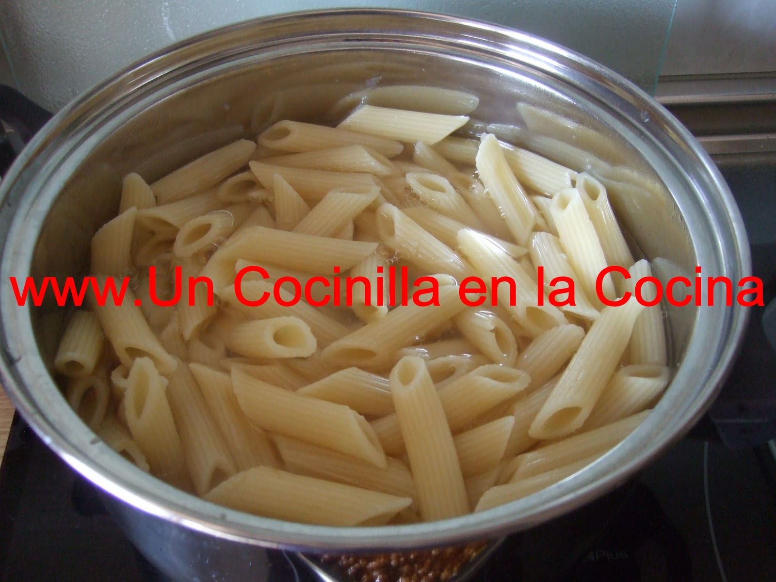 Se pone agua a cocer con una pizca de sal y una vez que comience a hervir echar los macarrones.El tiempo de cocción suele venir en la bolsa pero yo siempre le doy el doble de lo que pone.