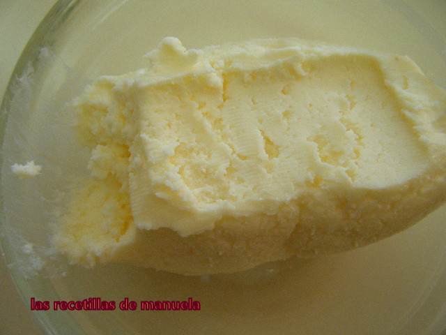 2Añada el agua fría y programe 1 minuto / velocidad 4. Vierta el contenido del vaso en el cestillo para escurrir el agua, esprímala bien con la espátula o dentro de una gasa fina de algodón. Ponga la mantequilla en un molde forrado con film transparente y guárdela en el frigorífico. Se puede utilizar en el momento.