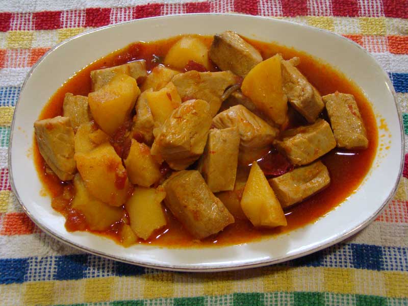 5.-Añadir el bonito a las papas, con el jugo que deja y con la mariposa puesta programamos 2 minutos, temperatura varoma, velocidad cuchara.
