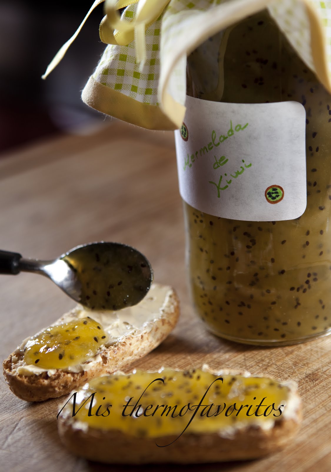 * Vierte la mermelada en un frasco de cristal, poner la tapa y dar la vuelta inmediatamente para que cree vacío y se conserve mejor por varios meses. Si se va a usar inmediatamente no hace falta que se haga este paso, simplemente se deja enfriar y a la nevera.