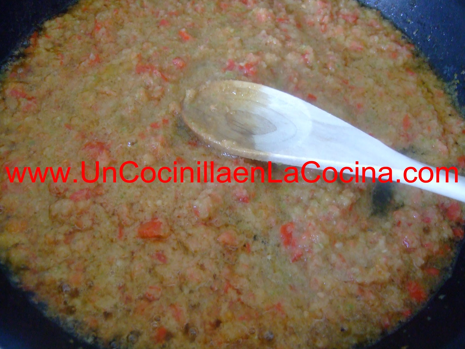 Se añade el arroz y se rehoga un poco, darle una vueltas.