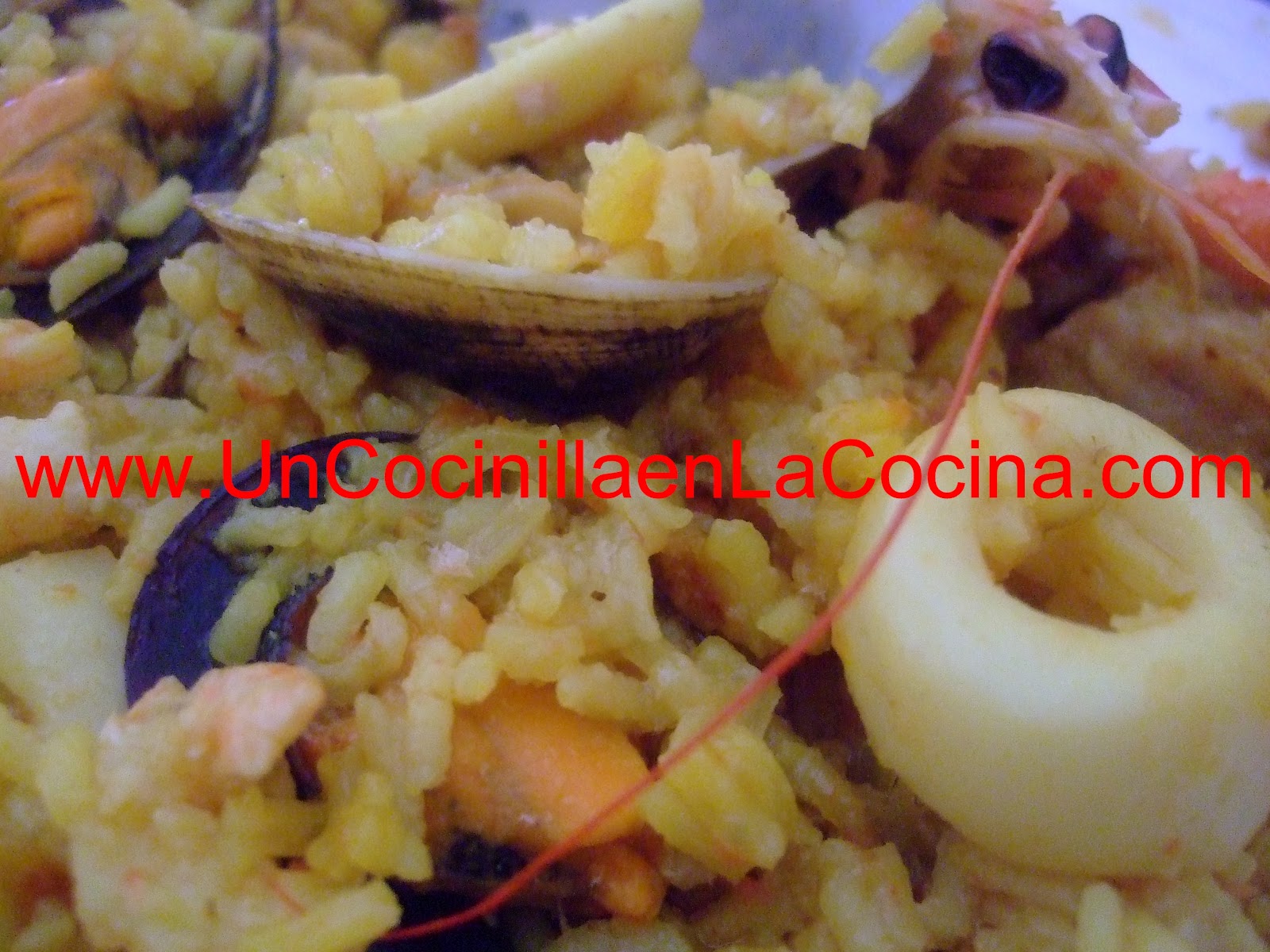 Y se le añade todo lo demás, las gambas, los mejillones, las anillas de calamar, las cigalitas. las almejas.