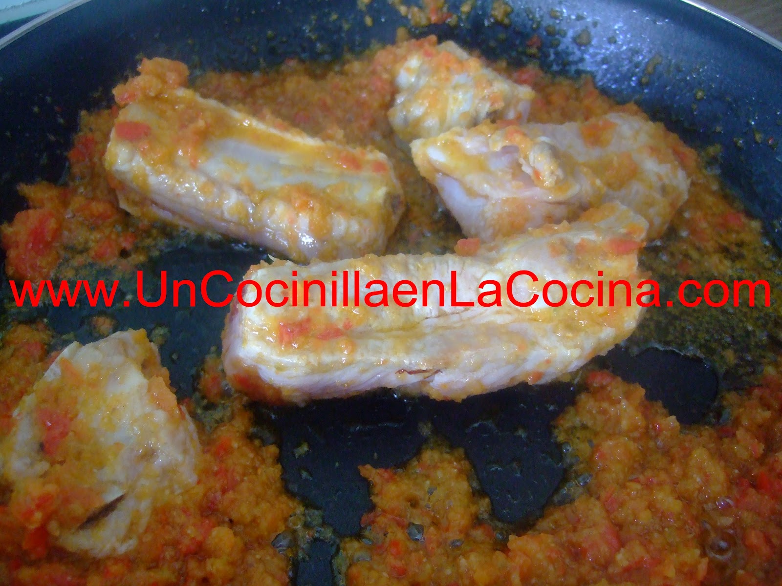 Se ponen la cabezas, pieles en un cazo y se cuecen. Se reserva el caldo.