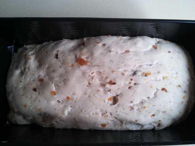 6.-Saque la masa, haga una bola y déle la forma que desee o ponga en un molde aceitado (es un pan grande, la masa no debe ocupar más de la mitad del molde). Espere que doble su volumen , dejándolo en un lugar libre de corrientes de airedurante 2horas o poniéndolo a 50º en el horno durante 15 minutos aprox.