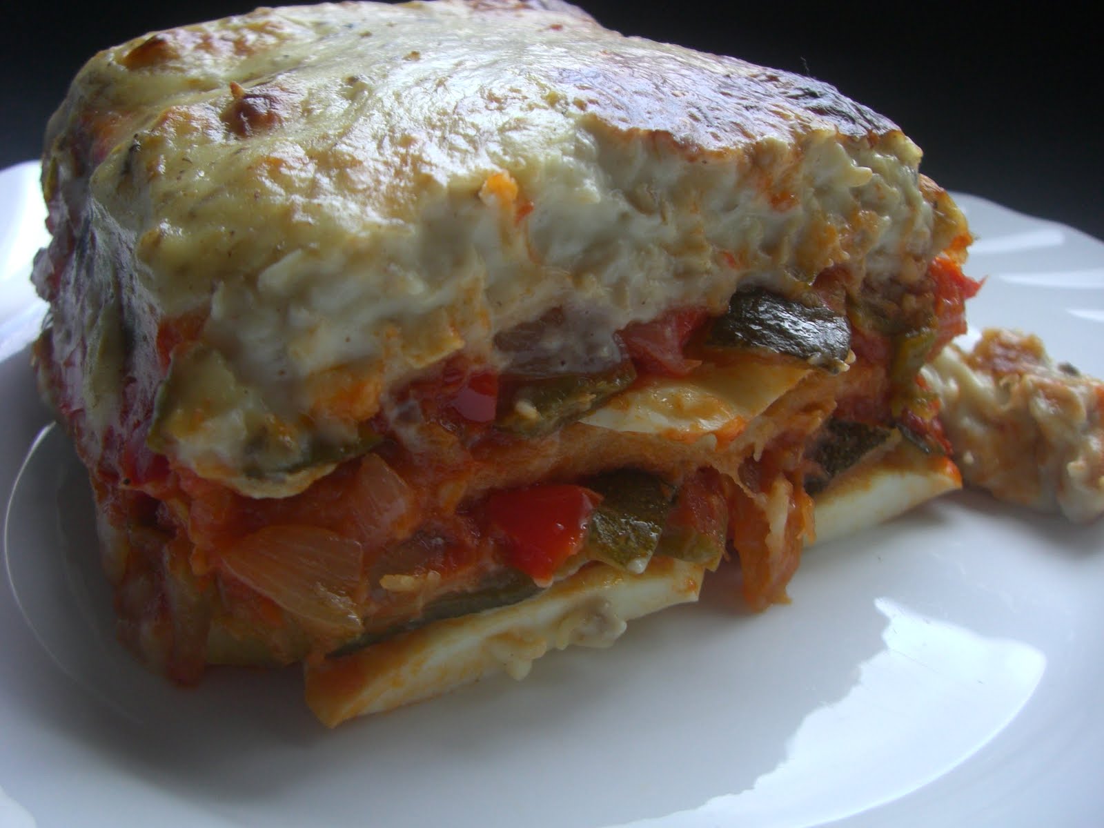 – Retirar el film transparente del molde , volcar en una fuente refractaria , retirar el resto del film , verter la salñsa bechamel por encima , espolvorear de queso y hornear hasta gratinar la parte superior.