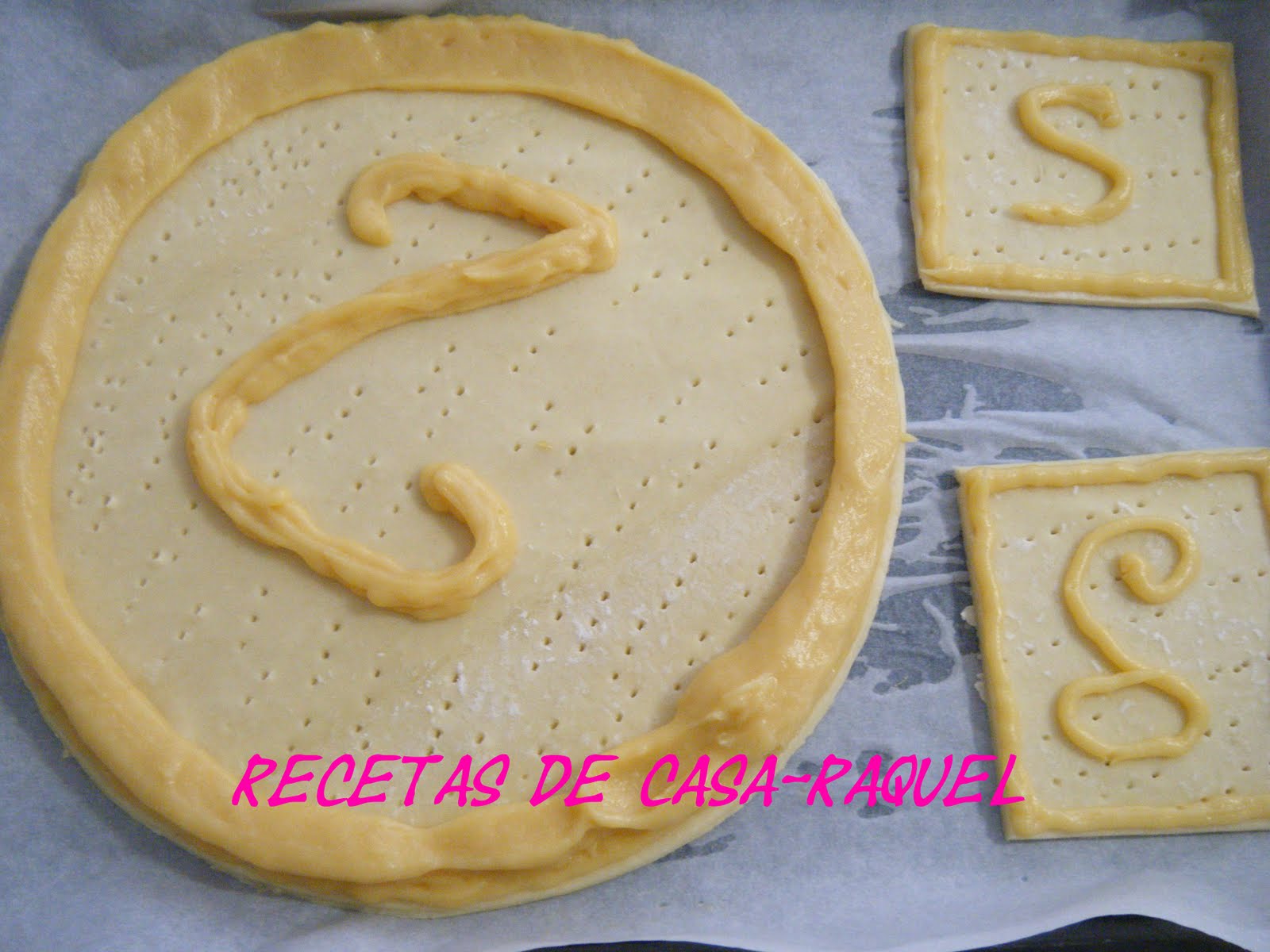 Pon la masa de hojaldre en papel de horno un poco humedecido en agua.
