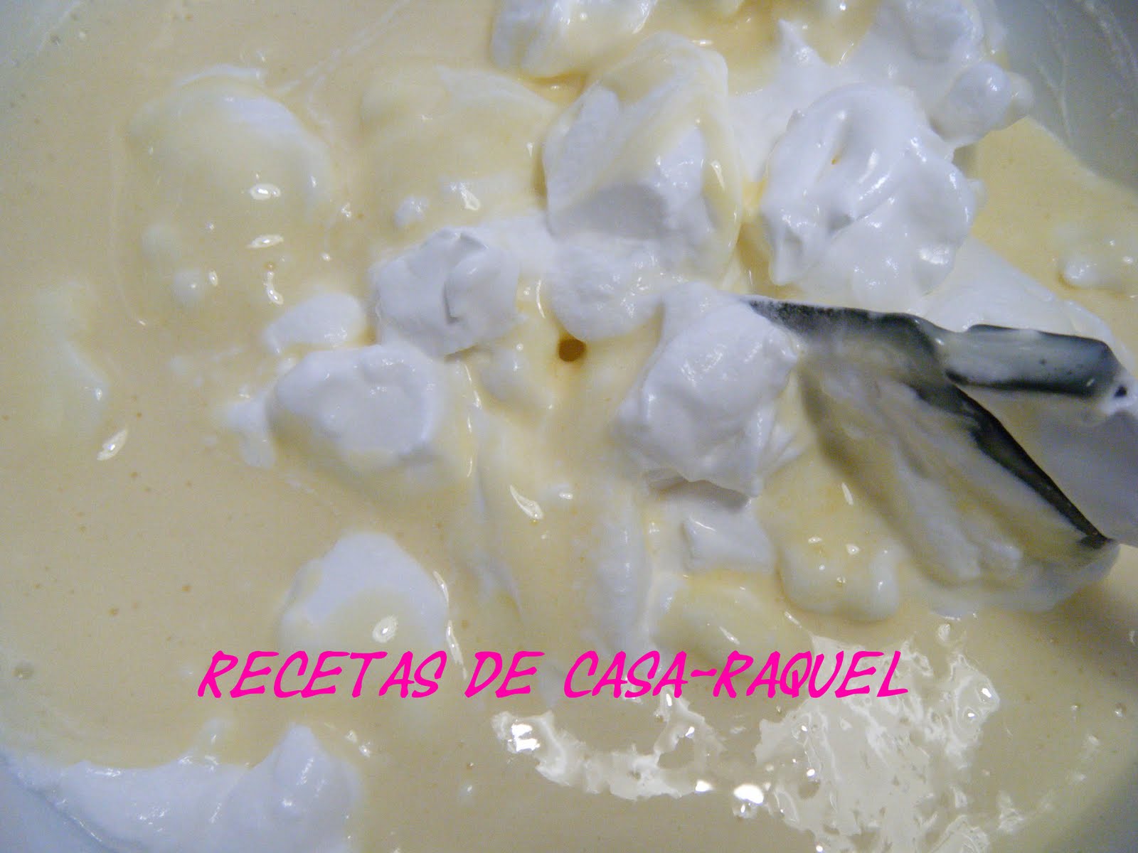 Mezclas las claras con la crema anterior con cuidado y de forma envolvente.