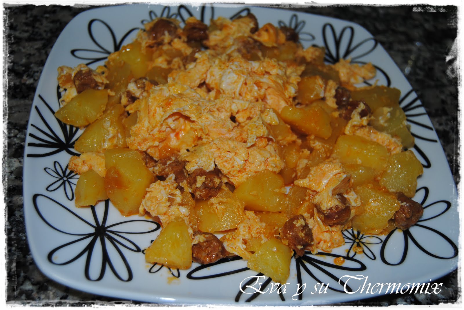 Ayer las peques se quedaron a dormir en casa de los abuelos y los papis tuvimos una jornada casera de pelis, costura y cenita con vino, ¡necesitábamos una buena cura de sueño ininterrumpido! Así que para tan importante ocasión rebusqué entre mi lista interminable de recetas que tengo que probar encontré ésta. No hay cosa que más le guste a Jorge que los huevos rotos y como las recetas del blog Recetas Thermomix nunca fallan me puse manos a la obra y aquí teneis el resultado.