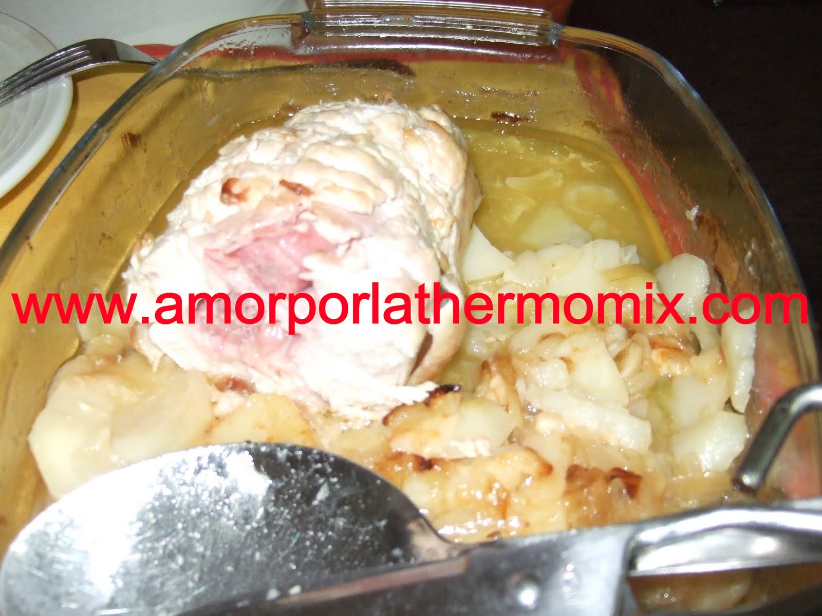 Colocar la pechuga encima de las patatas y de las cebollas.
