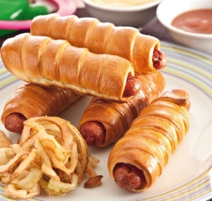 Sirva calientes o frios con ketchup, mostaza y cebolla frita