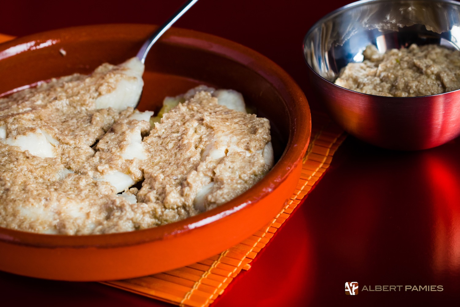 - Vierta las patatas en una fuente, encima el pescado, y salsee do la salsa de champiñones, reservando parte de ésta en una salsera.